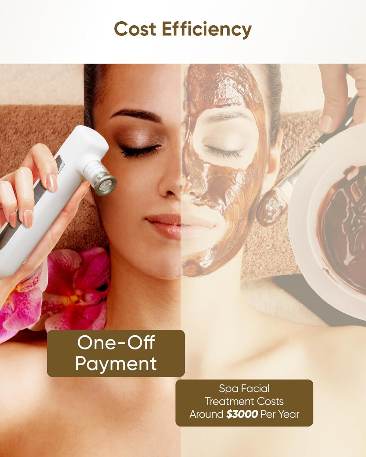 4-in-1 Facial Treatment:Diamond microdermabrasion, pore suction, water mist hydration, and LED mirror all in one device; gently exfoliates, unclogs pores, and revitalizes your skin with spa-level care