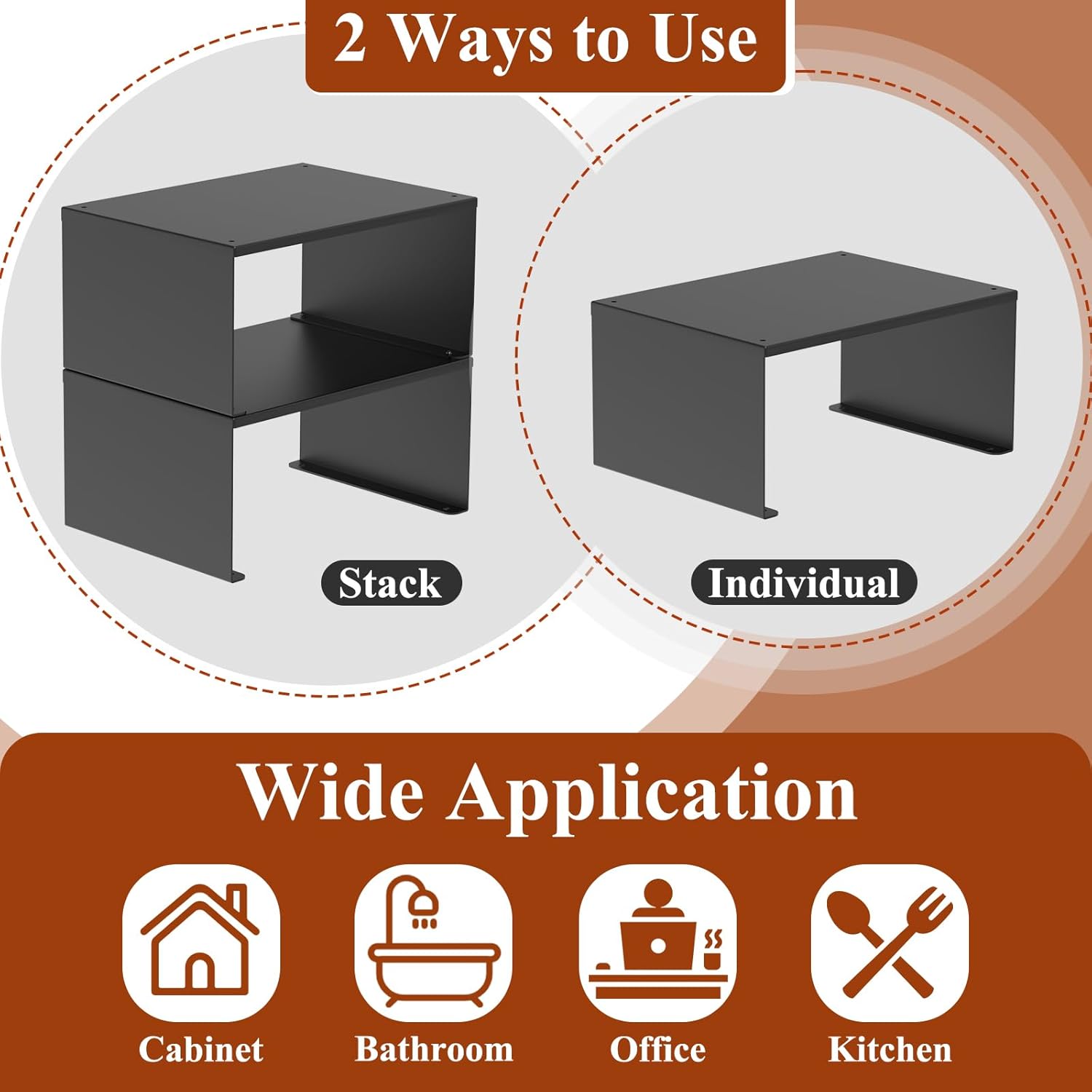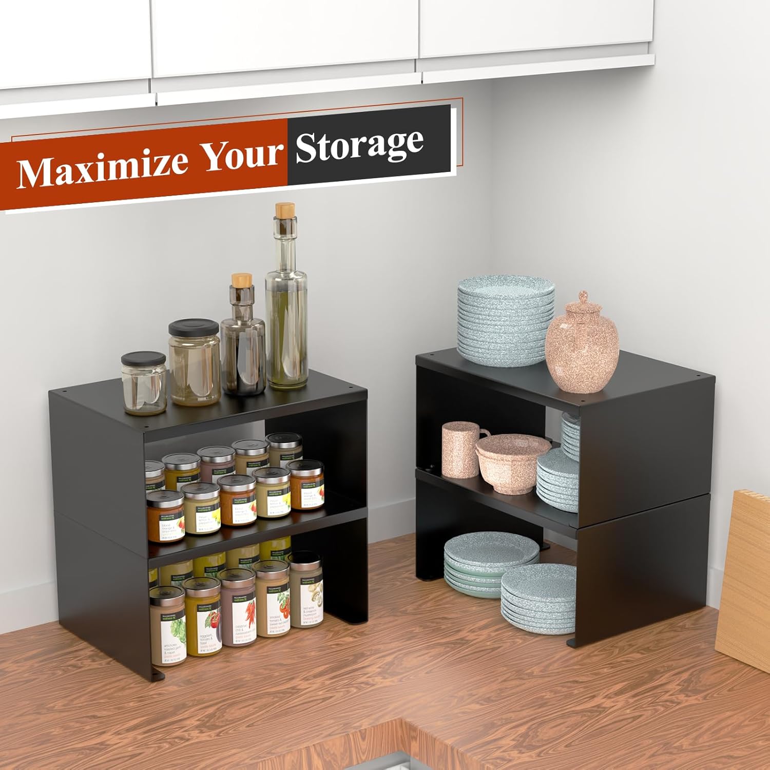 Kitchen Counter Shelf Set of 2, Cabinet Organizer Rack, Black Pantry Storage, Stackable Shelf Organizer for Bathroom, Bedroom, Office, Table, Desk