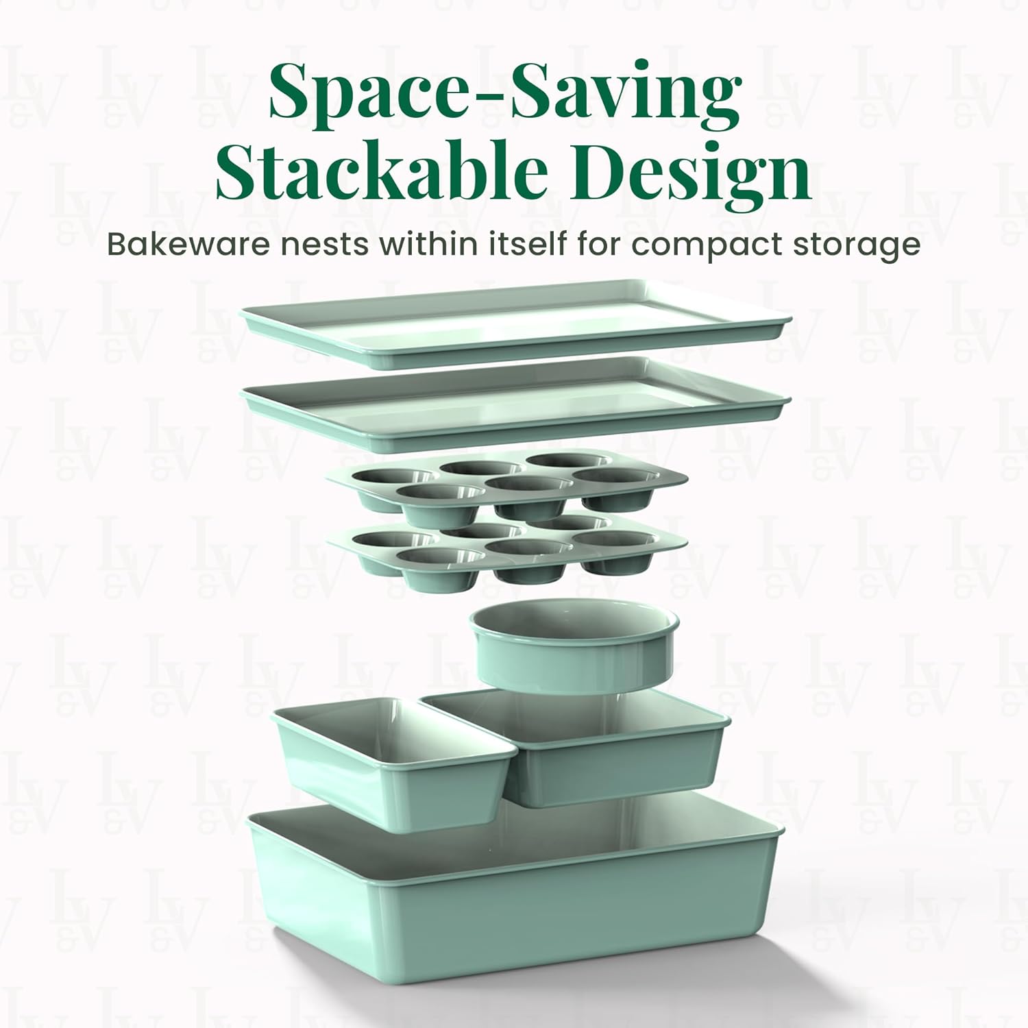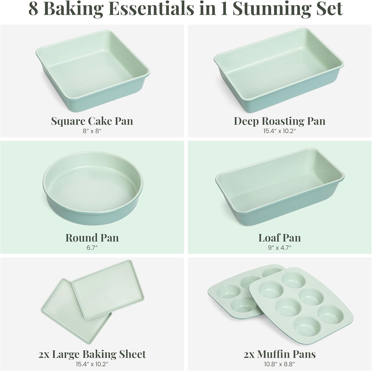 Larder & Vine 8-Piece Bakeware Set | Non-Stick Baking Set with Ceramic Finish | PFAS, PFOA, PTFE, and BPA Free Baking Essentials | Baking Sheets, Muffin Tins and Assorted Baking Pans | Sage