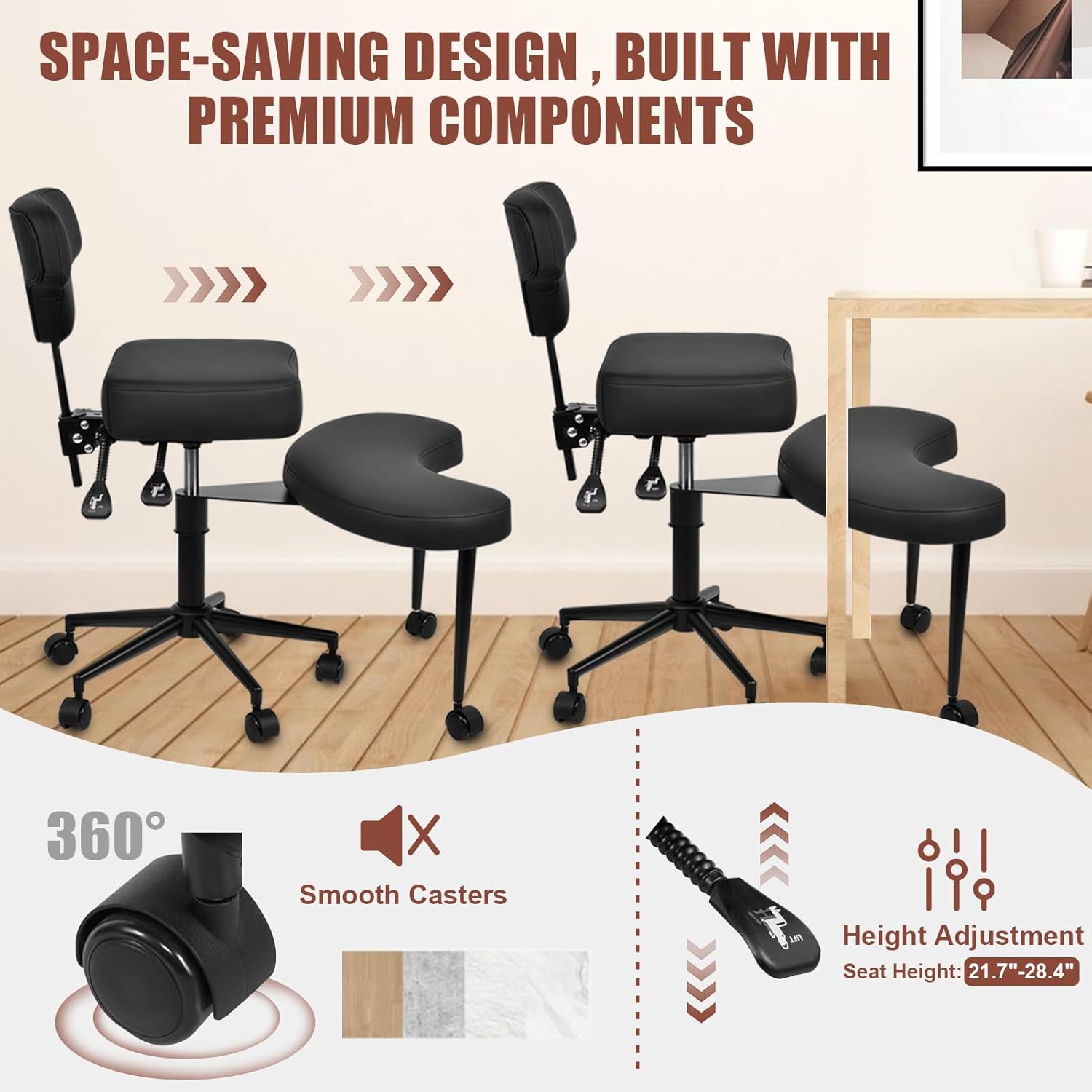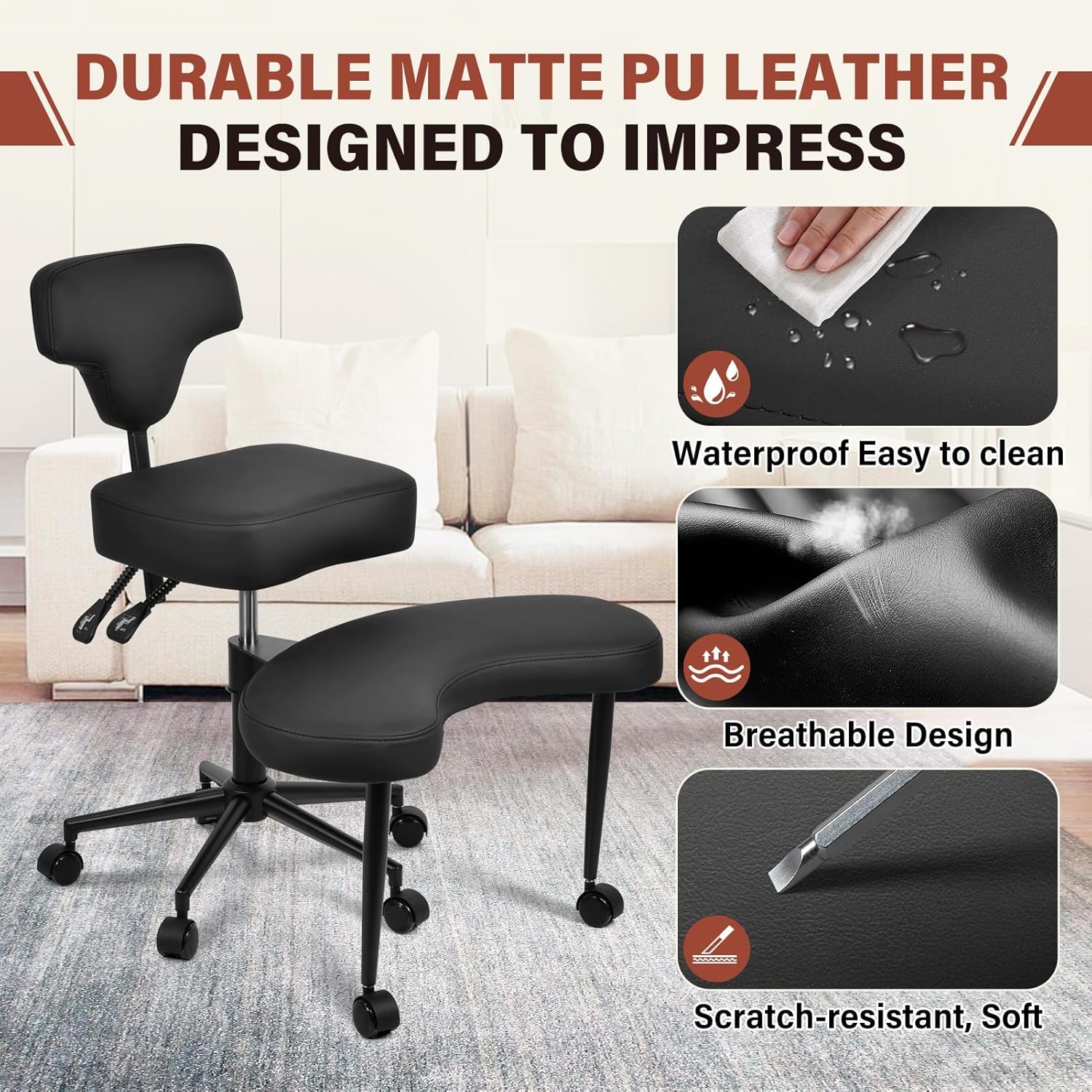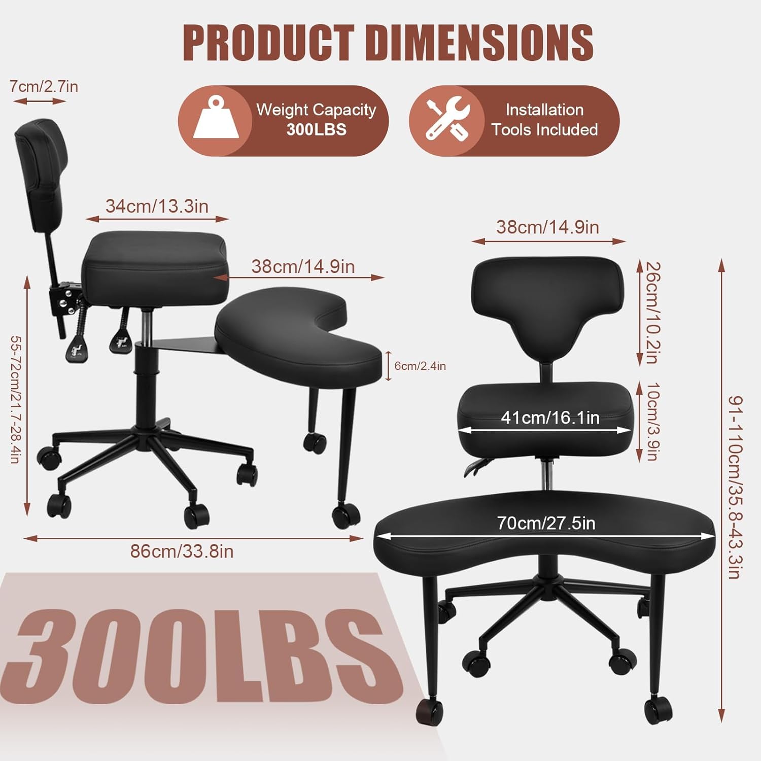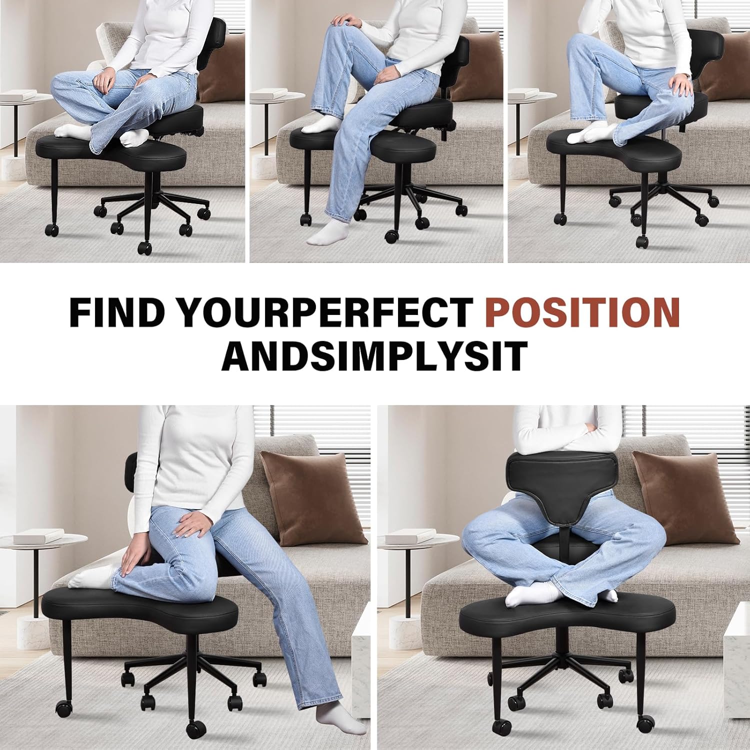 Legged Chair with Wheels, Meditation Chair, ADHD Desk Chairs for Adults, Adjustable Height Yoga -Seat, Wide Criss Seat with Lumbar Support (Black)
