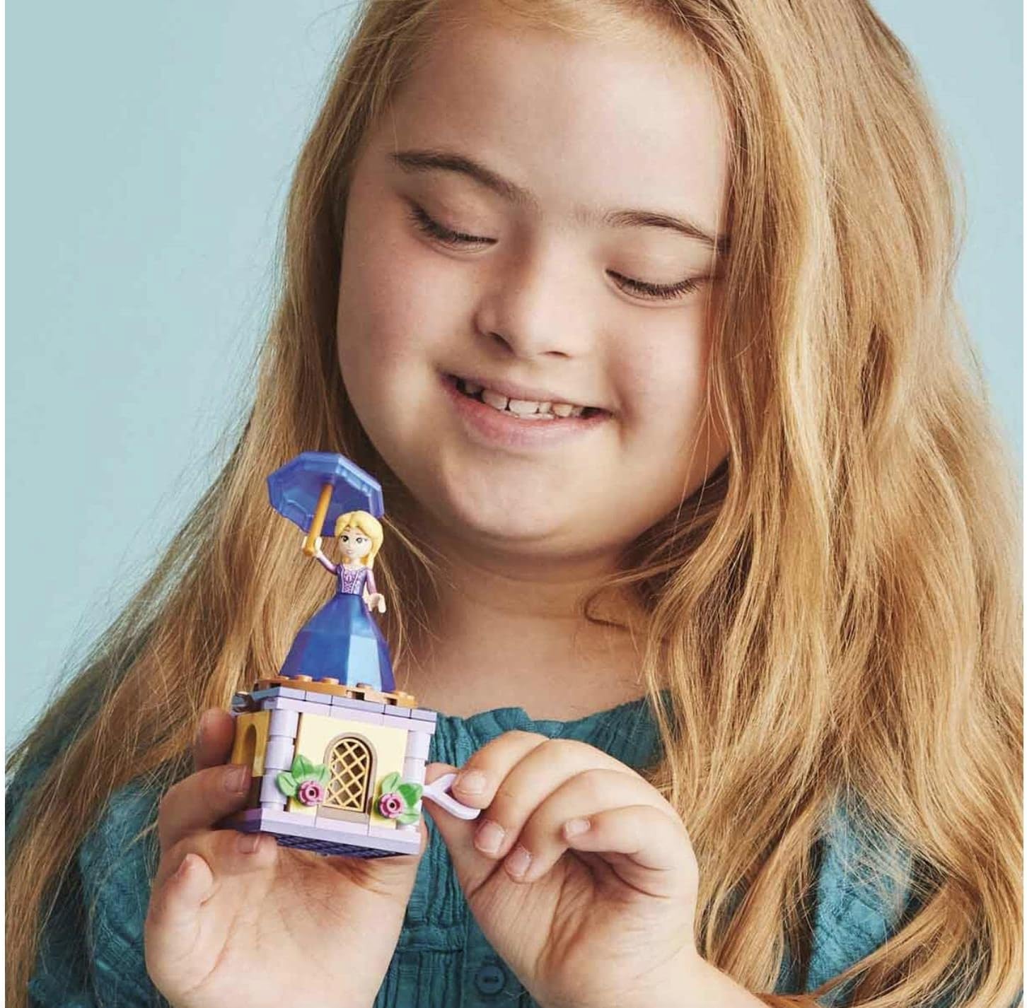 Surprise children aged 5 and up with this LEGO | Disney Rapunzel music box (43214), a building toy. With this imaginative LEGO set, fans can swirl around with the Disney Rapunzel mini doll in her diamond dress.