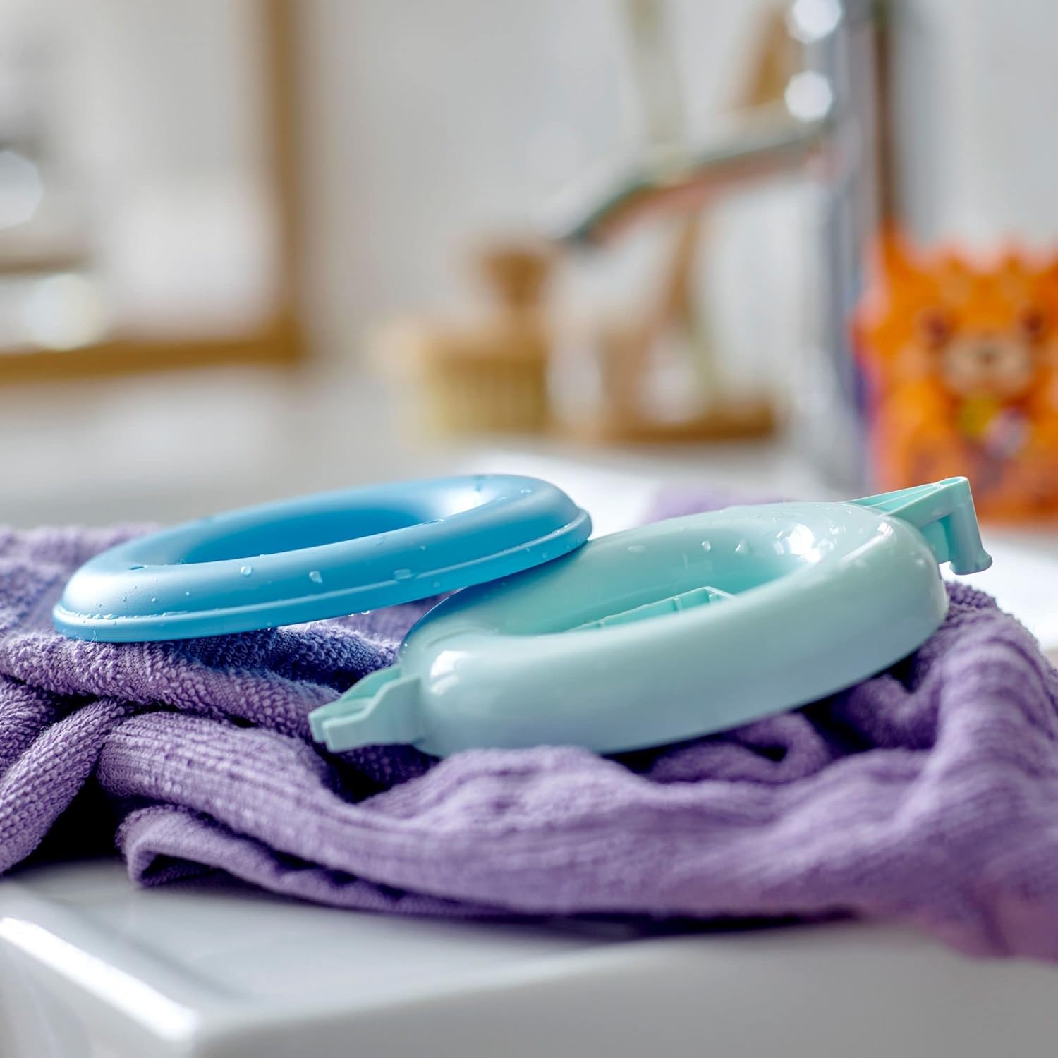 A rounded hook on the floating ring lets kids connect with other LEGO DUPLO floating ring bath toys for even more bath time fun