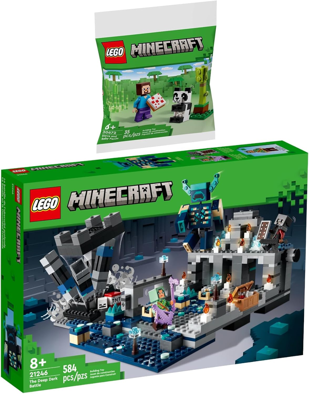 Lego Minecraft Set of 2: 21246 The Duel in Darkness & 30672 Steve with Baby Panda