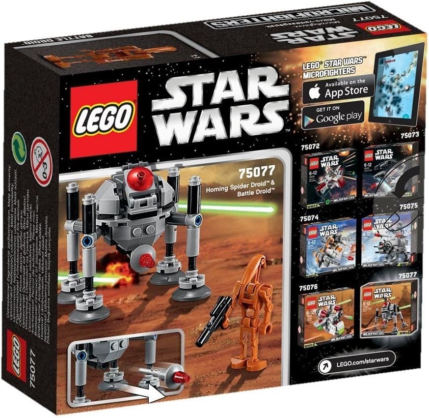 Go on the hunt on planet Geonosis with the heavily armored LEGO Star Wars Homing Spider Droid micro fighter. This amazing small-scale version of the Droid featured in the Star Wars movies has cool detailing, adjustable legs, flick missile and even a mini cockpit for the Battle Droid to sit in. Give the order to take down the Republican forces! Includes a Battle Droid figure with a blaster.