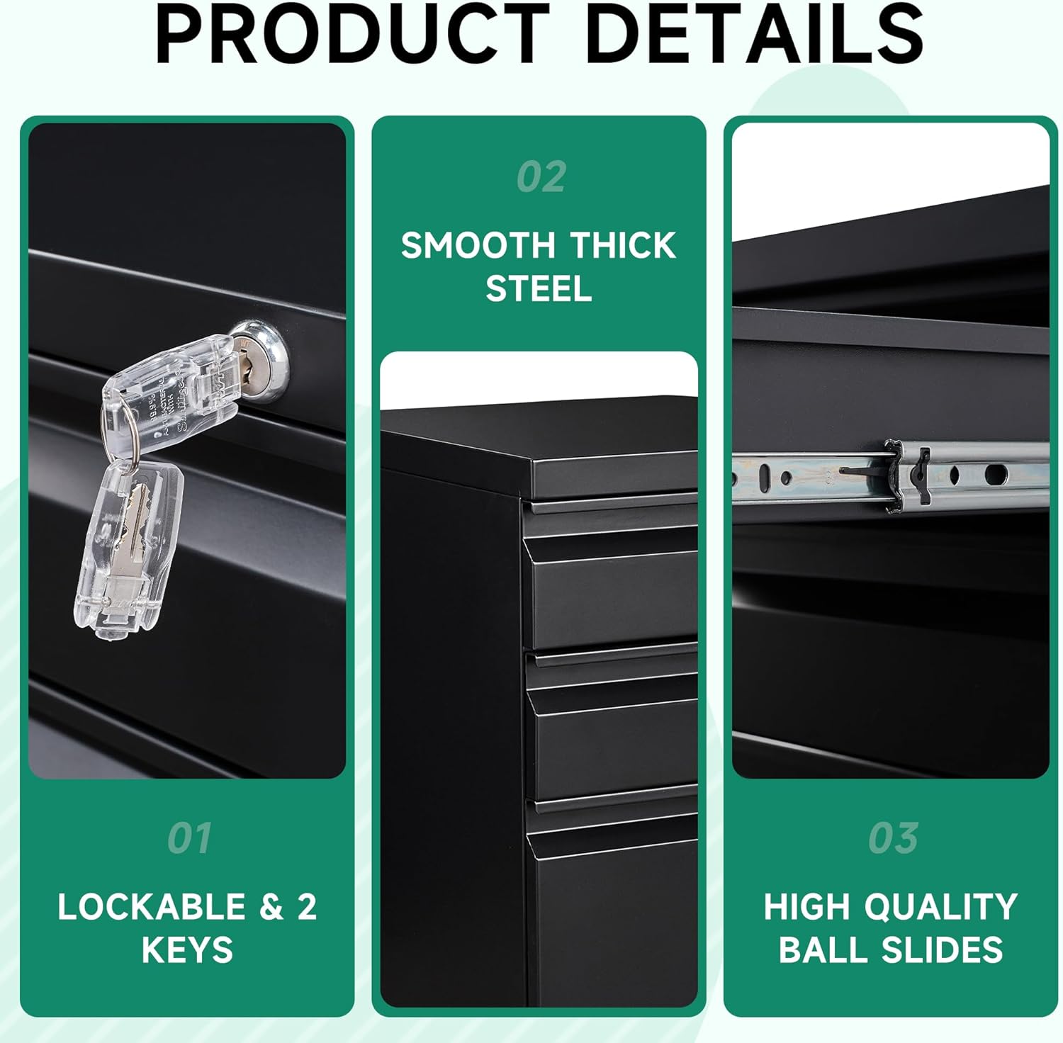 【Sturdy and Durable】This file cabinet is made of high-quality steel with a powder-coated finish, ensuring durability and long-lasting use. The anti-tipping mechanism ensures stability even when fully loaded.