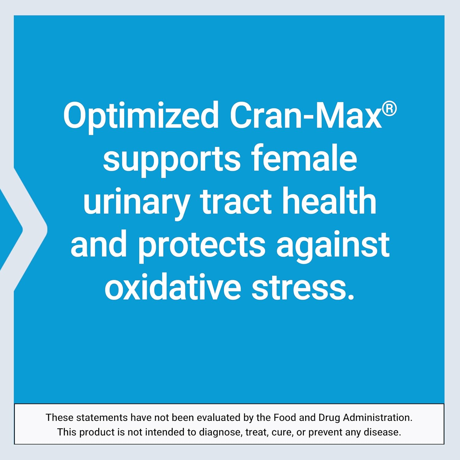 Optimized Cran-Max® is a customer-favorite and best-in-class formula for female urinary health. It contains 250 mg of potent cranberry whole fruit concentrate plus 100 mg of complementary hibiscus extract to support a healthy female urinary tract and protect against oxidative stress. Optimized Cran-Max® contains 60 vegetarian and gluten-free capsules, enough for a 30-day supply. This formula is made with 100% non-GMO ingredients and is manufactured in the USA.