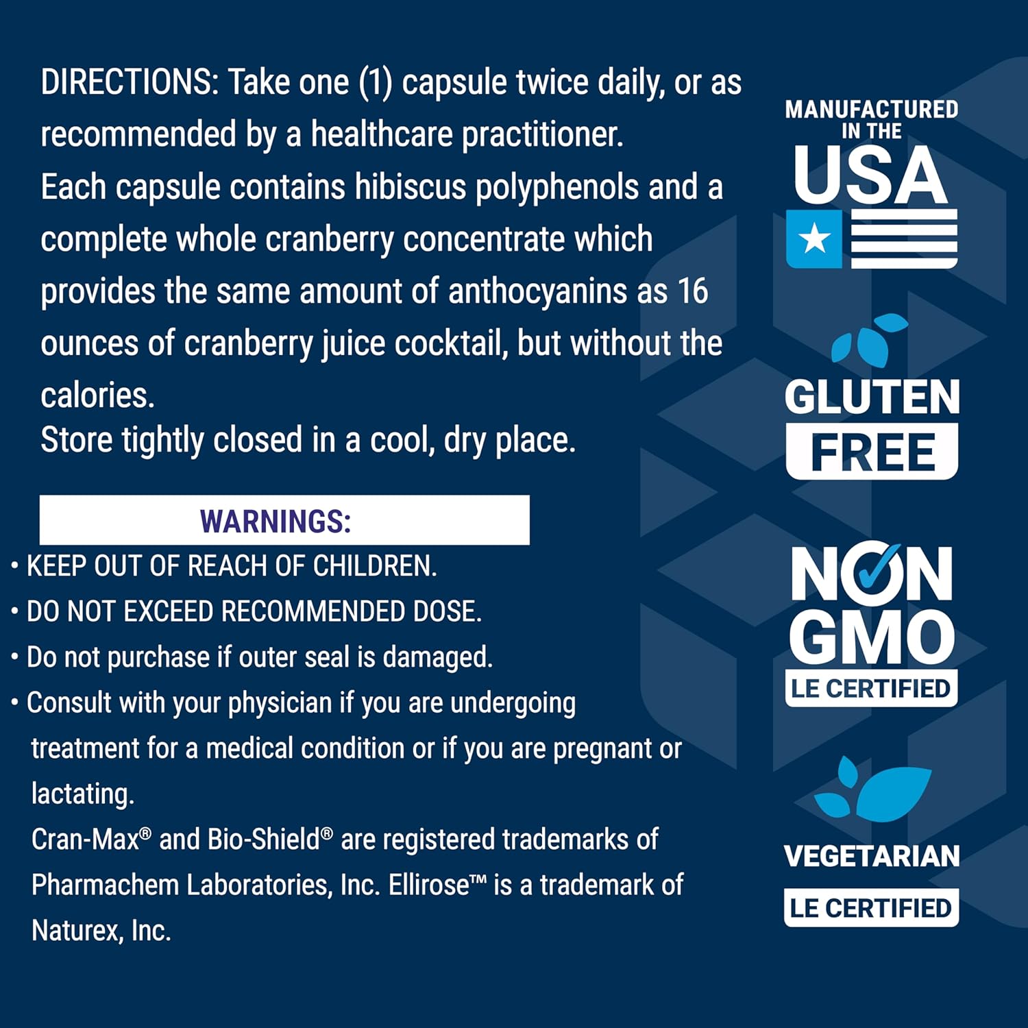 Life Extension Optimized Cran-Max®, Cranberry Whole Fruit Concentrate with Hibiscus Extract, Best in Class Support for Female Urinary Tract Health, Gluten-Free, Vegetarian, Non-GMO, 60 Capsules
