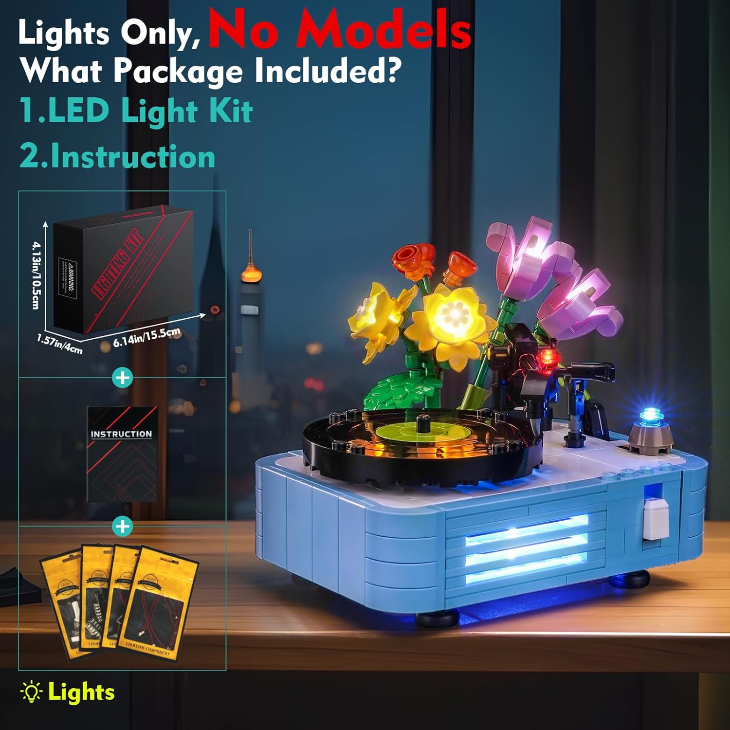 【LIGHT UP YOUR BLOCKS】Light up corners of the model with gleam, intense lights, you can see the vivid details inside and outside, lights compatible with LEGO Record Player with Flowers 31172. make blocks glow in the dark. A special arrangement for Fans & Family collections.