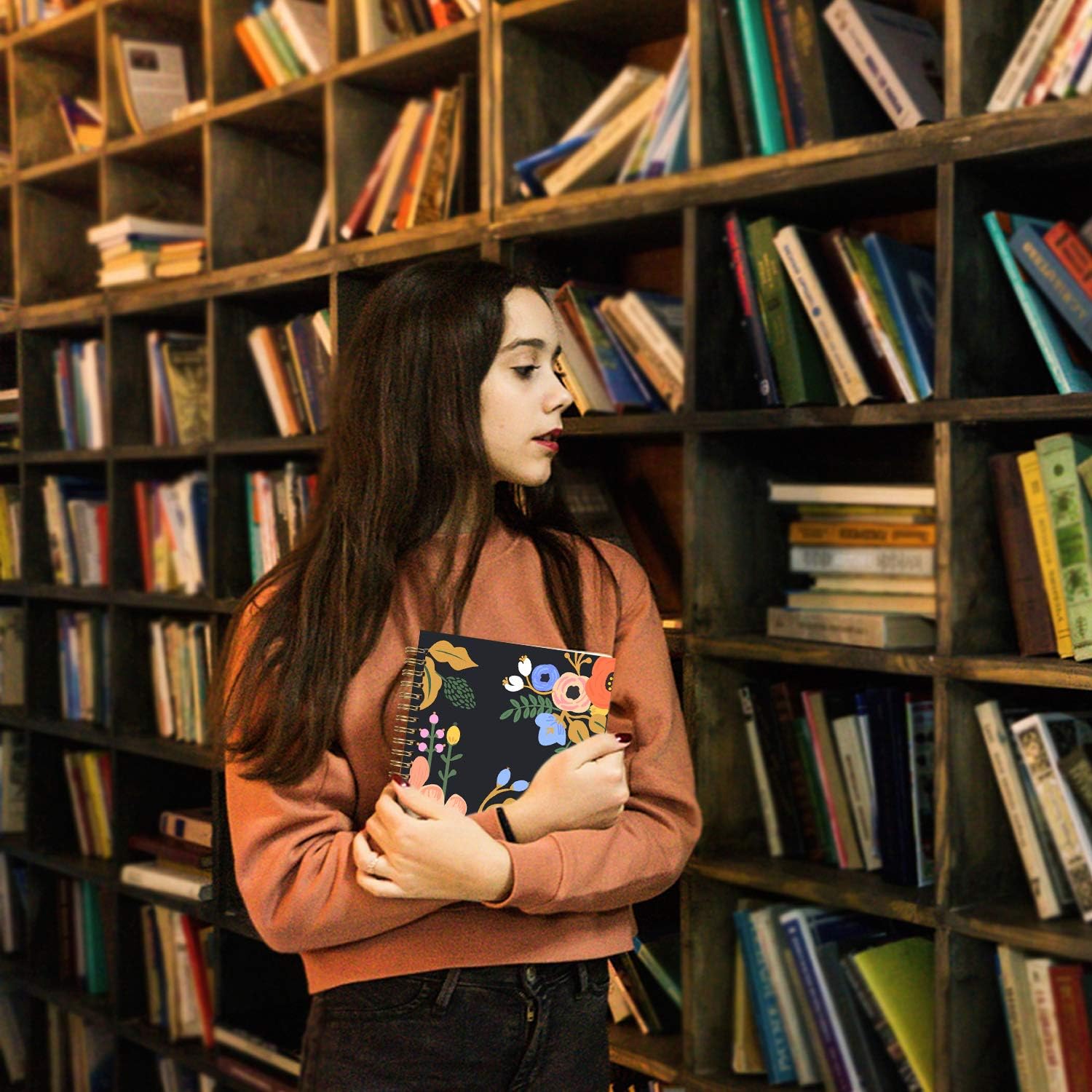 Lined Notebook Spiral, A5 Flower College Ruled Journals Bulk, 100GSM Thick Paper Travel Journal Set, Hard Cover, Wirebound Diary Planner, 75 Sheets per Book, 5.7×8.3 inch, 3 Pack