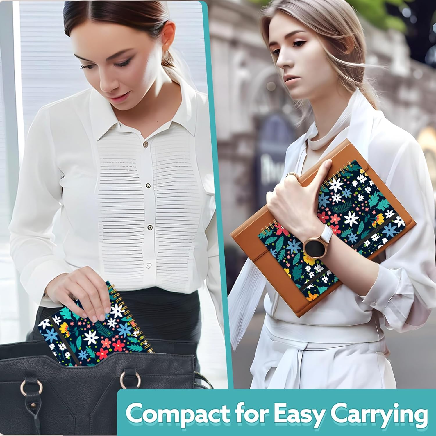 Lined Spiral Notebook, 140 Pages College Ruled Journal for Women A5 Journaling Notebooks for Work & Note Taking Perfect for Men Women Office Home School, 5.9″ x 8.3″ – Black Flower