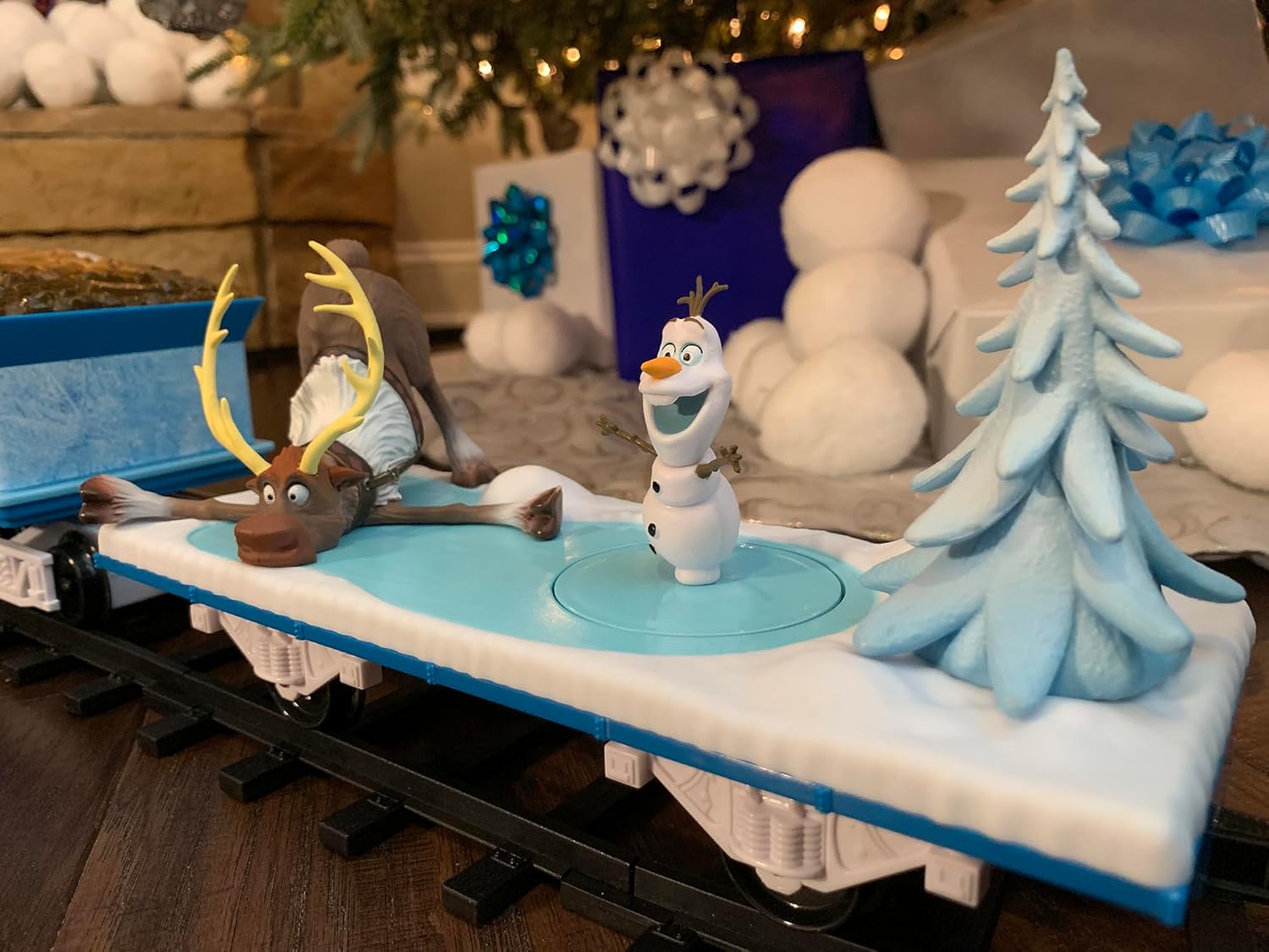 TRAIN SET FEATURES – Battery powered general-style locomotive; Authentic trains sounds, including bell and whistle; Movies sounds from Frozen; Working headlight; User-friendly remote