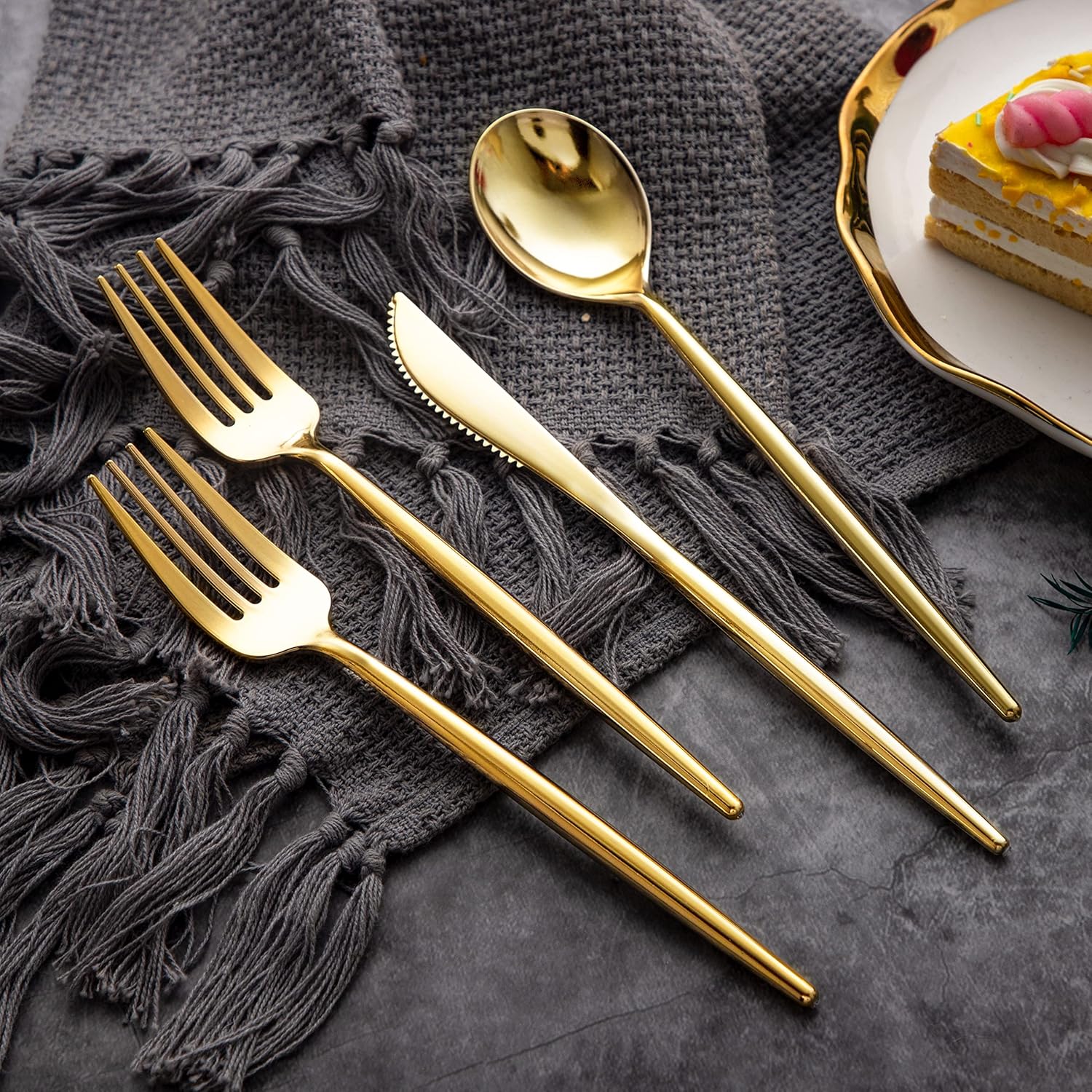 This disposable gold cutlery is disposable but durable, so you can wash it by hand after use, or just throw it away, saving you valuable time and spending more time with your family and friends