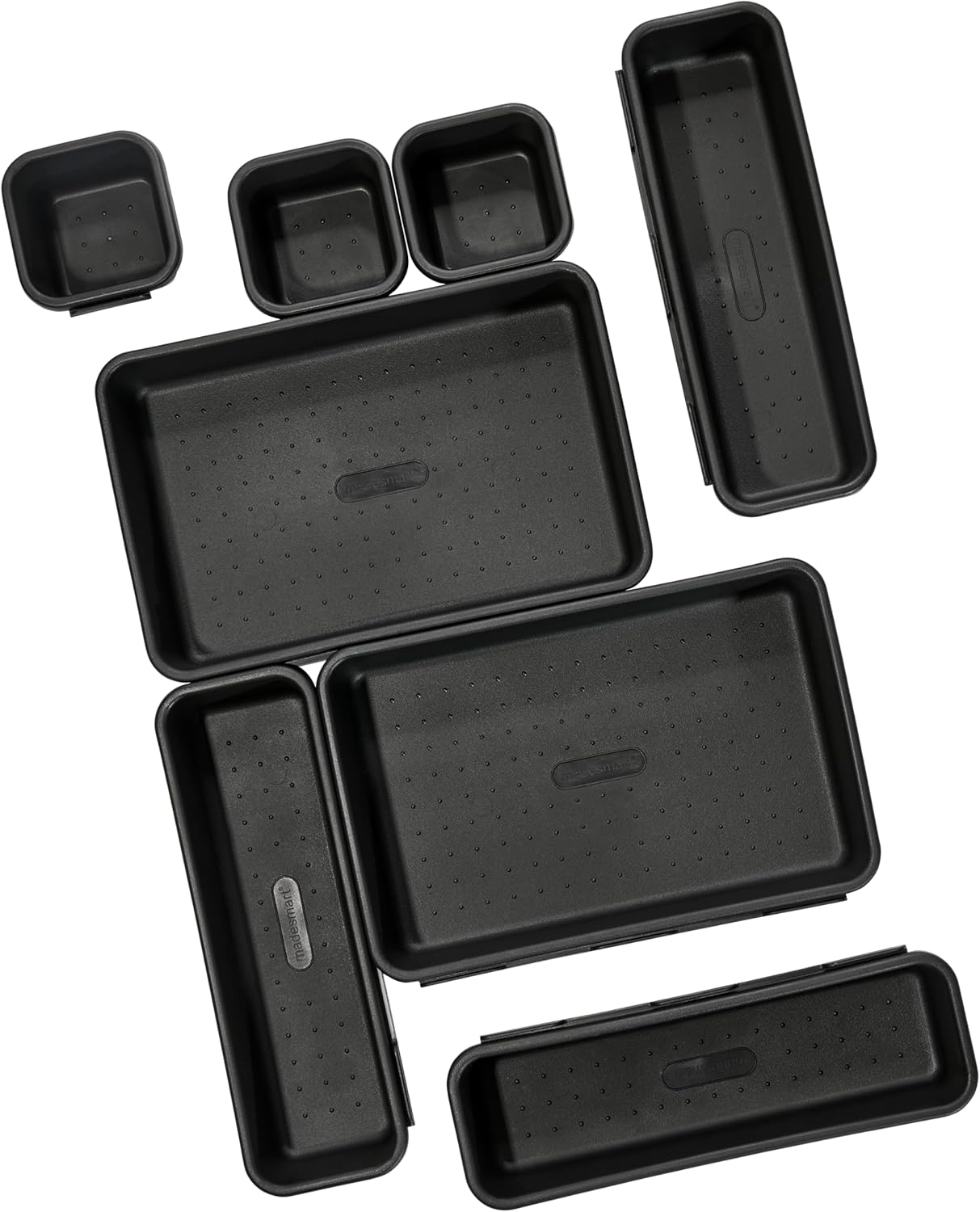 Madesmart 8-Piece Interlocking Bin Pack for Drawer Organization, Plastic Interlocking Junk Drawer Organizer Tray, Granite