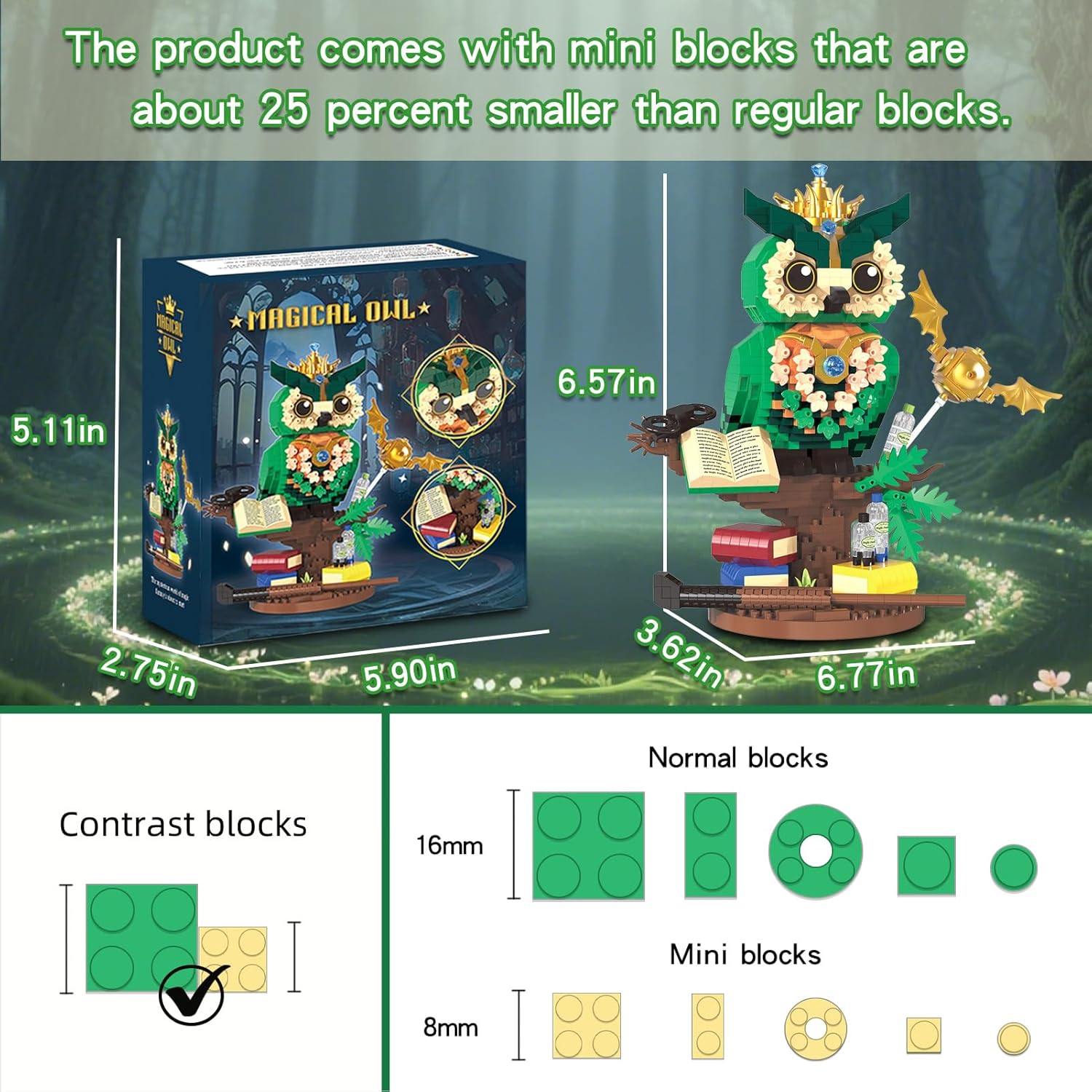 【Light up the magical halo】The lighting element enhances the charming mystery of the magic owl, adding a captivating and soft glow. This dynamic feature makes it a more imaginative and charming work to build and display