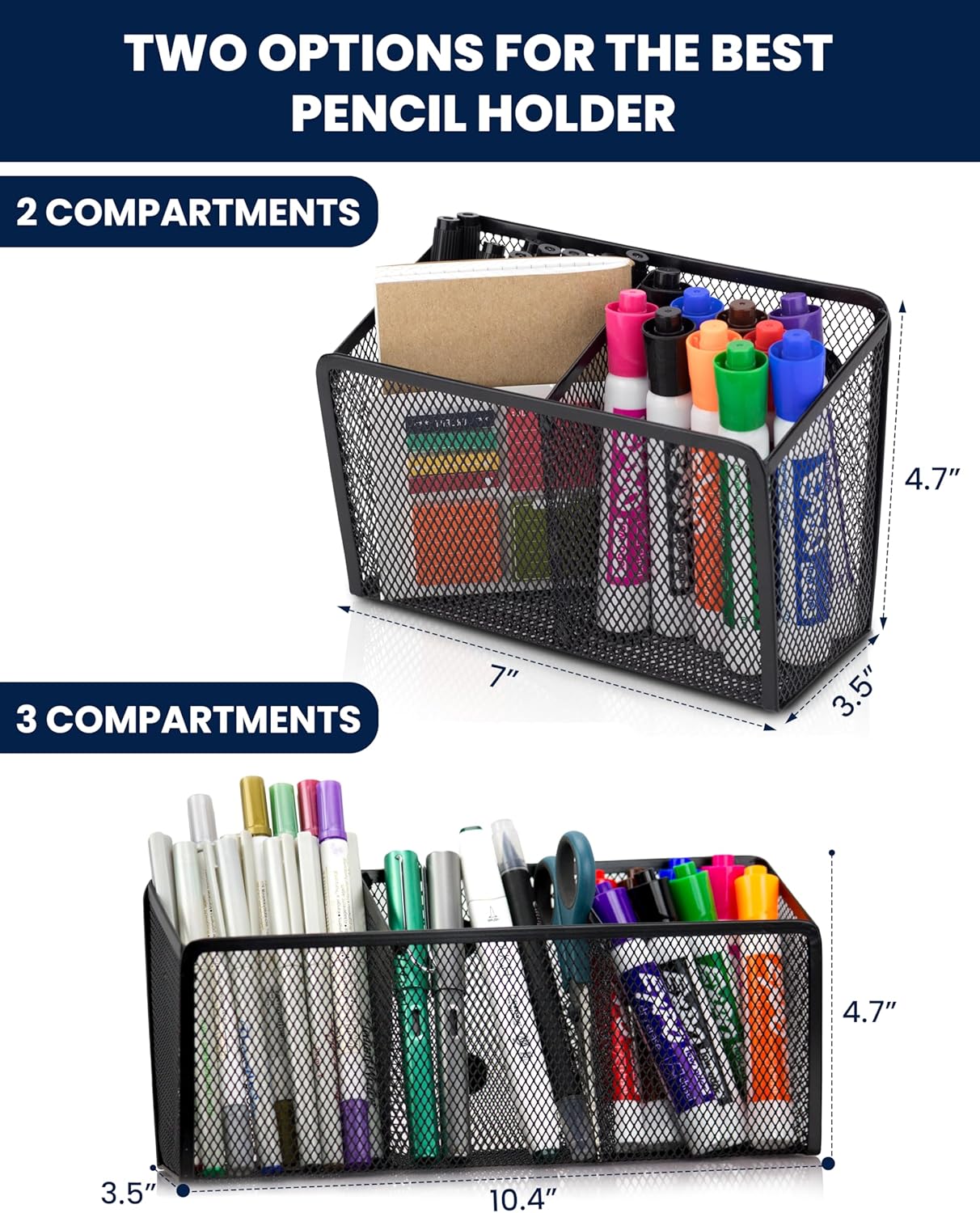 Magnetic Pencil Holder with 3 Compartments – Magnetic Pen Holder for Fridge & Whiteboard; Locker Organizer with Strong Mesh Steel