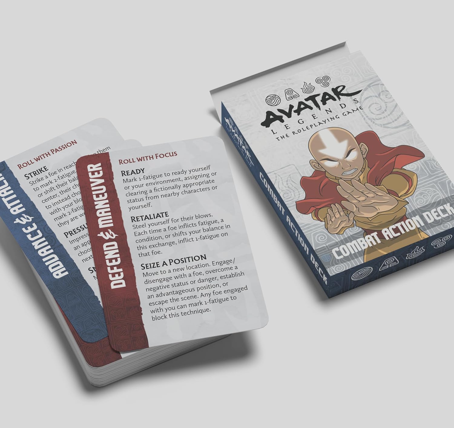 Expansion for the officially-licensed Avatar Legends: The Roleplaying Game: 55 cards designed to make combat exchanges smooth and easy to track.