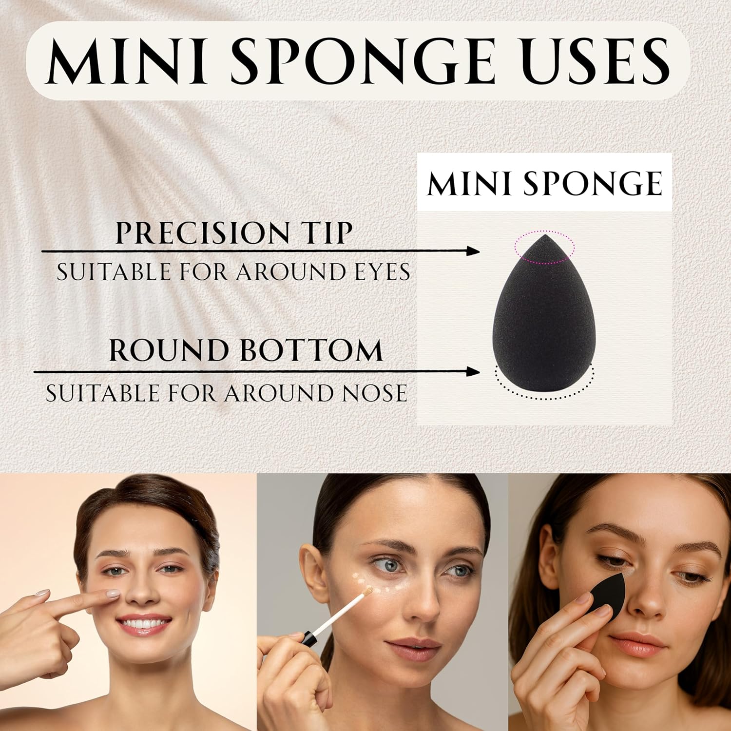 Complete Set: Explore our comprehensive beauty blender pack. With a combo of make up sponges for face, this set includes a versatile face sponge and a mini makeup sponge, providing tools for every step of your routine. Perfect for all skin types.