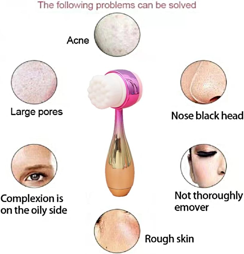 Manual Facial Cleansing Brush 2 in 1Double-Sided Facial Cleaning Brush with Soft Bristles (Electroplated Pink-Gold)