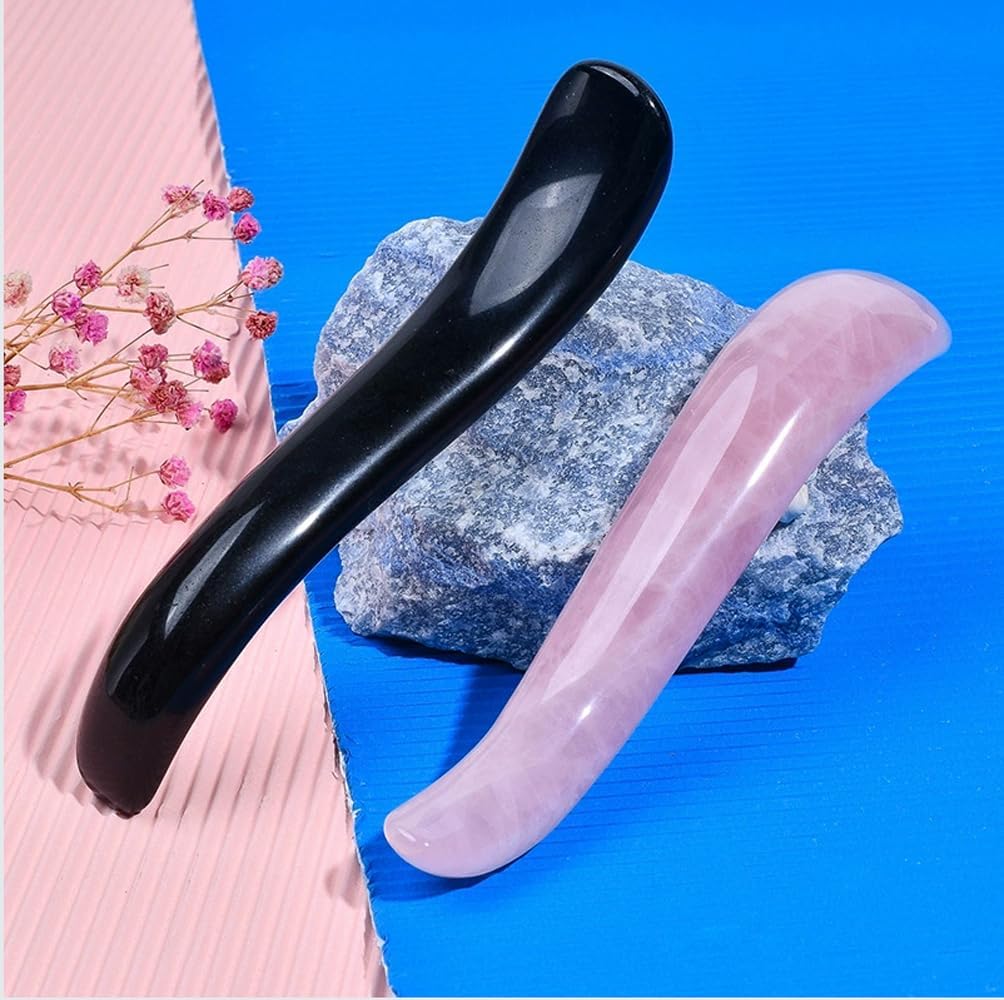 Massage Stones Guasha Roller Pink Jade Gemstone Meditation Healing Stick Stone Gua Sha Board for Facial Spa Massage