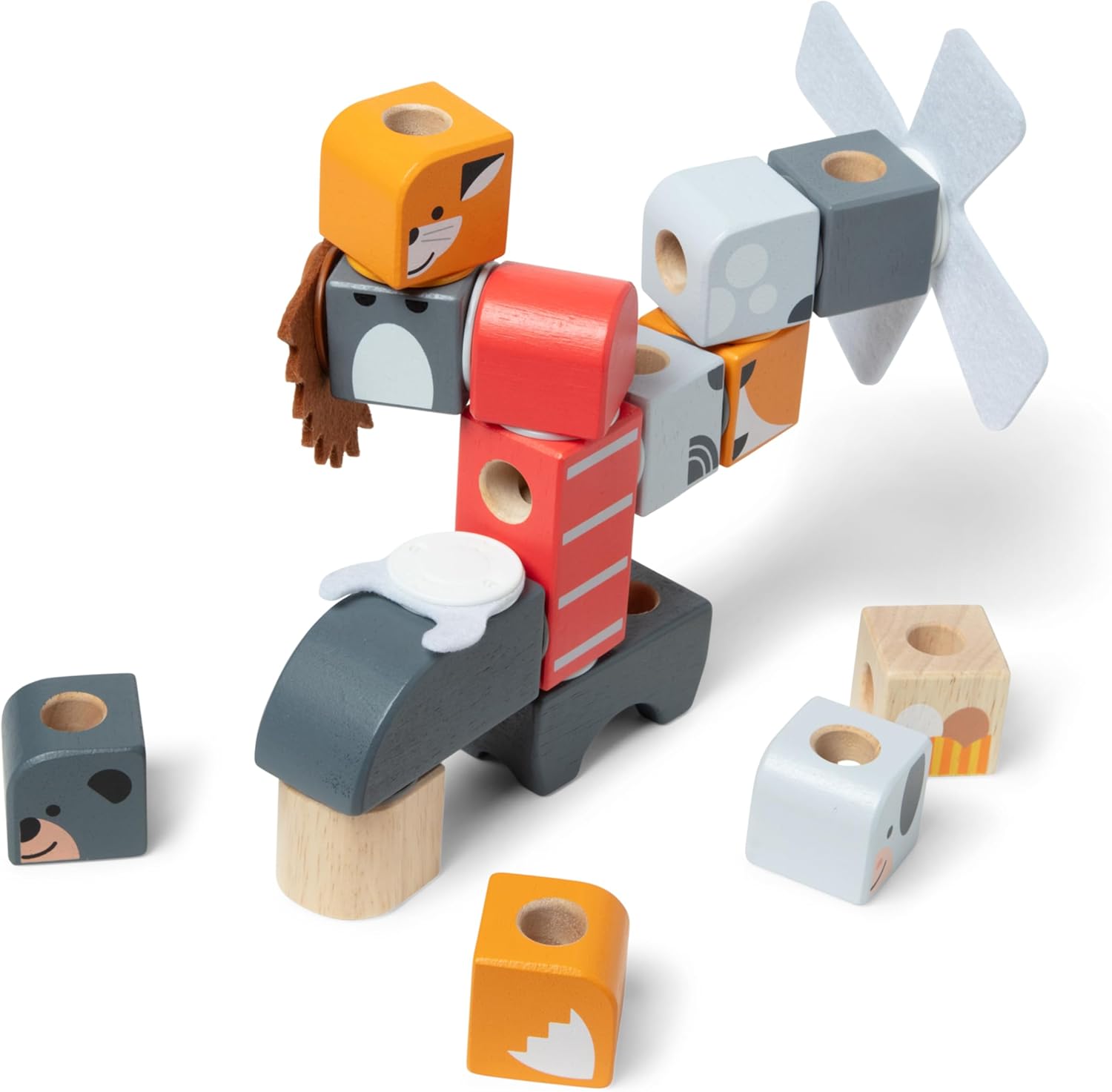 Melissa & Doug Blockables are connectable, stackable, and playable solid wood building blocks, perfect for little hands and big imaginations; special connectors let kids 2 and older easily snap together smooth, colorful blocks to create fun animals and a windmill to play with, or combine to build their own silly characters and cool creations