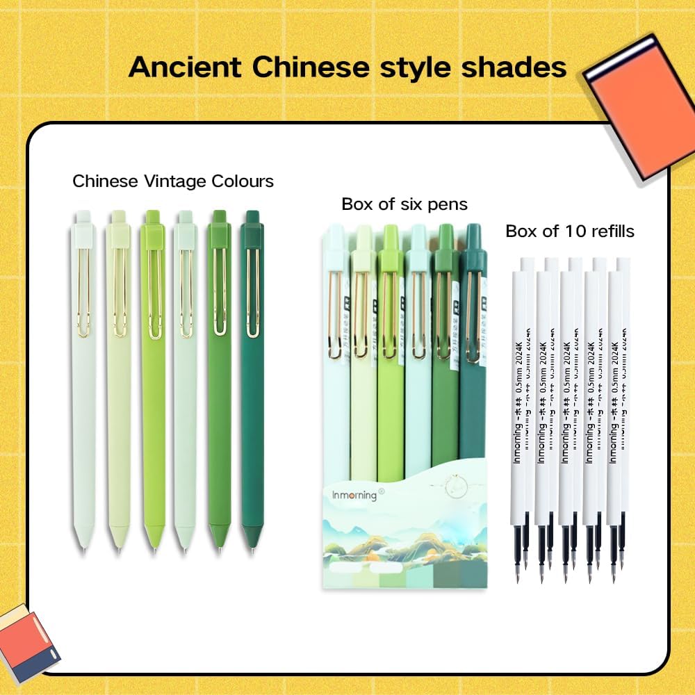 Aesthetic Stationery Set Supplies: Includes 6 retractable black ink pens (0.5mm) with 10 refills, 6 mini correction tapes (3.35 x 0.91 inches), 240 green sticky notes (2.5 x 2.5 inches), and 240 index tabs (0.7 x 2.5 inches) – perfect for a cute stationery set or office use.
