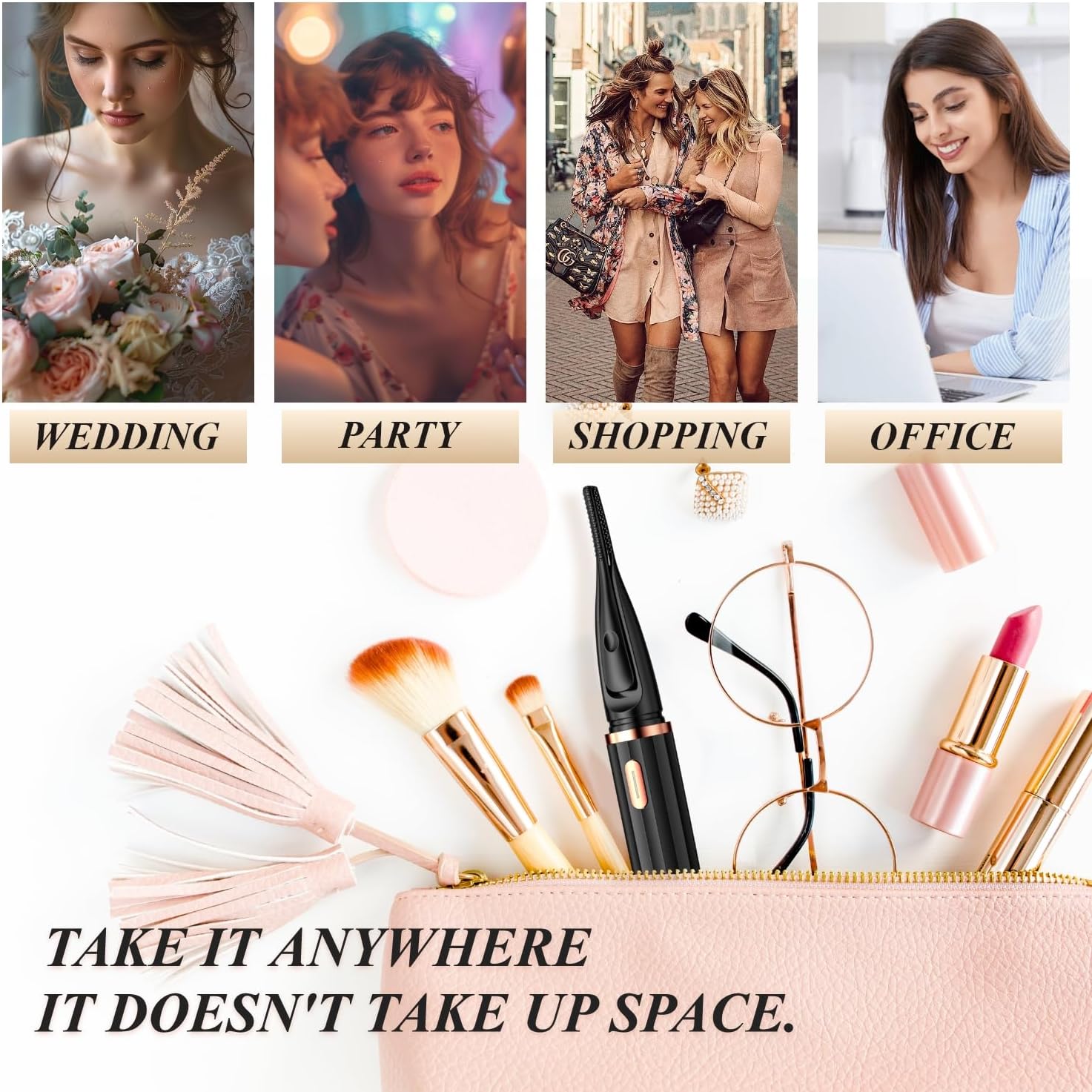 【Attractive and fast curling】:The lash curler can fast heat up within 10s and the curved curling head quickly creates a perfect, natural curl for your eyes. Lasts up to 24 hours.