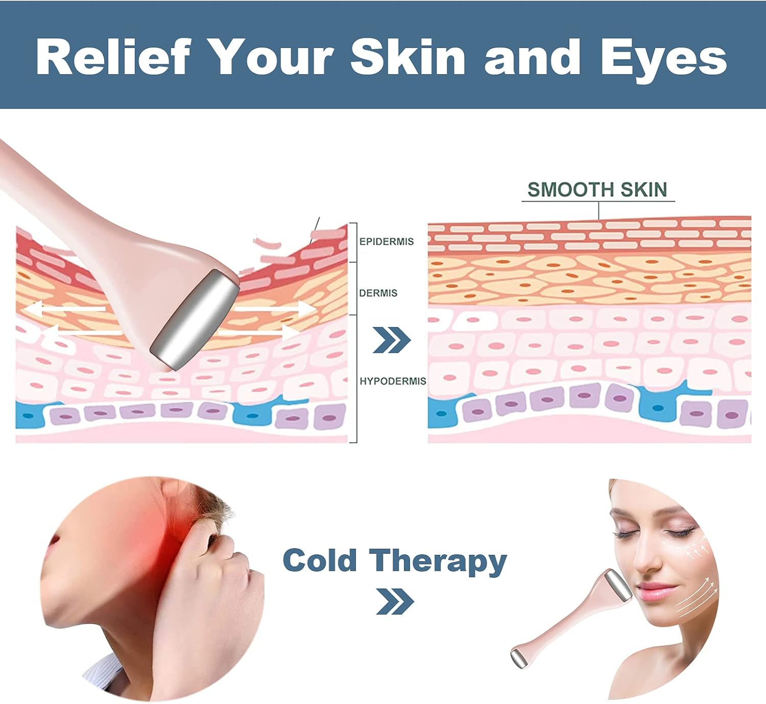 [RELIEF EYE PUFFINESS AND SHRINK PORE] Using once a day to shrink pores, eyes ice roller massager will help with acne and enlarged pores by reducing puffiness your under-eye skin and face redness, preventing eye false wrinkles, nasolabial folds and increasing blood flow