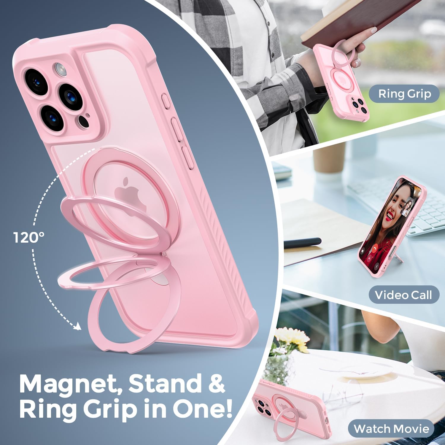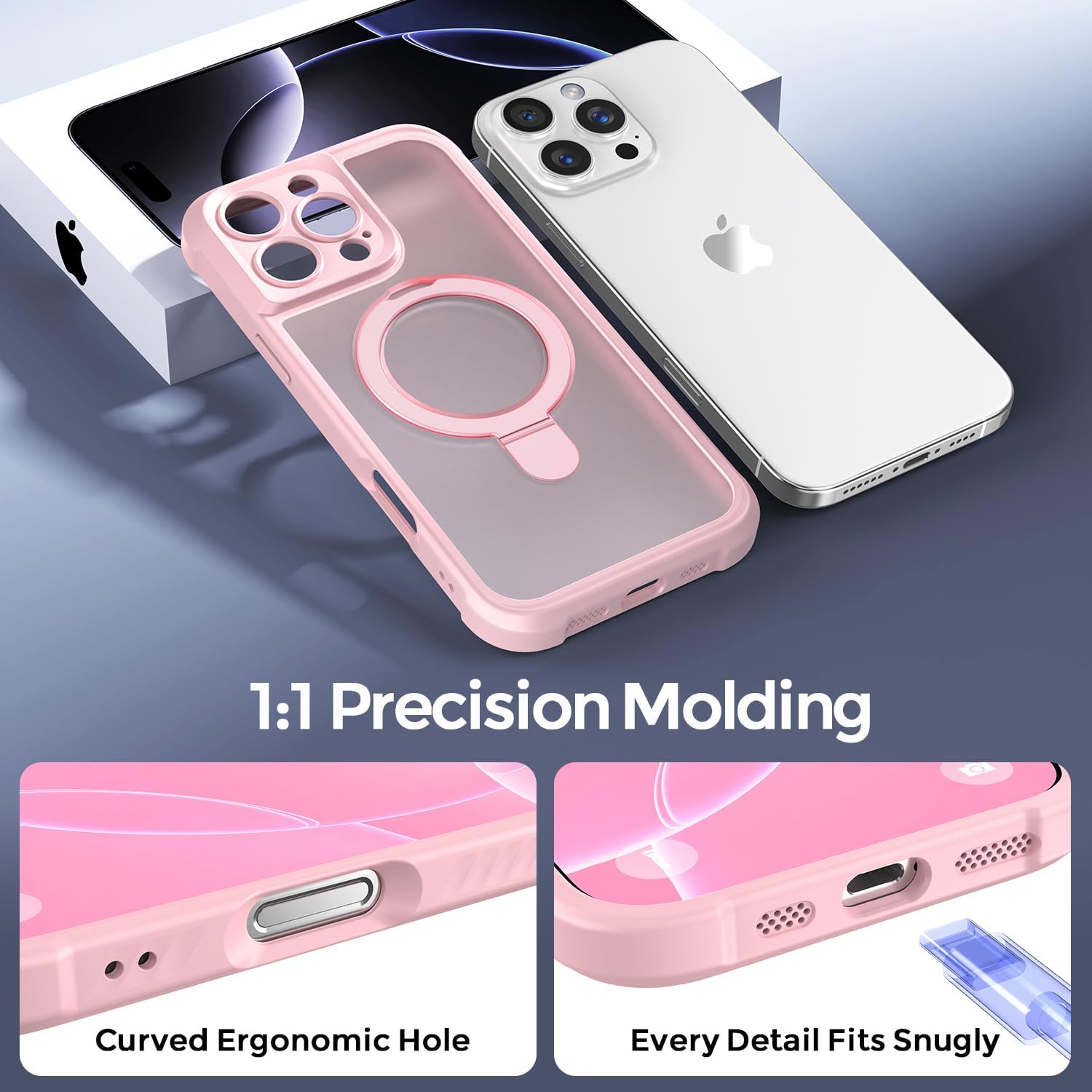 MOCCA Design for iPhone 16 Pro Max Case with Magnetic Invisible Stand [Full Camera Protection] [Compatible with Magsafe] Military Drop Shockproof Translucent Matte Phone Case Cover 6.9″,Pink