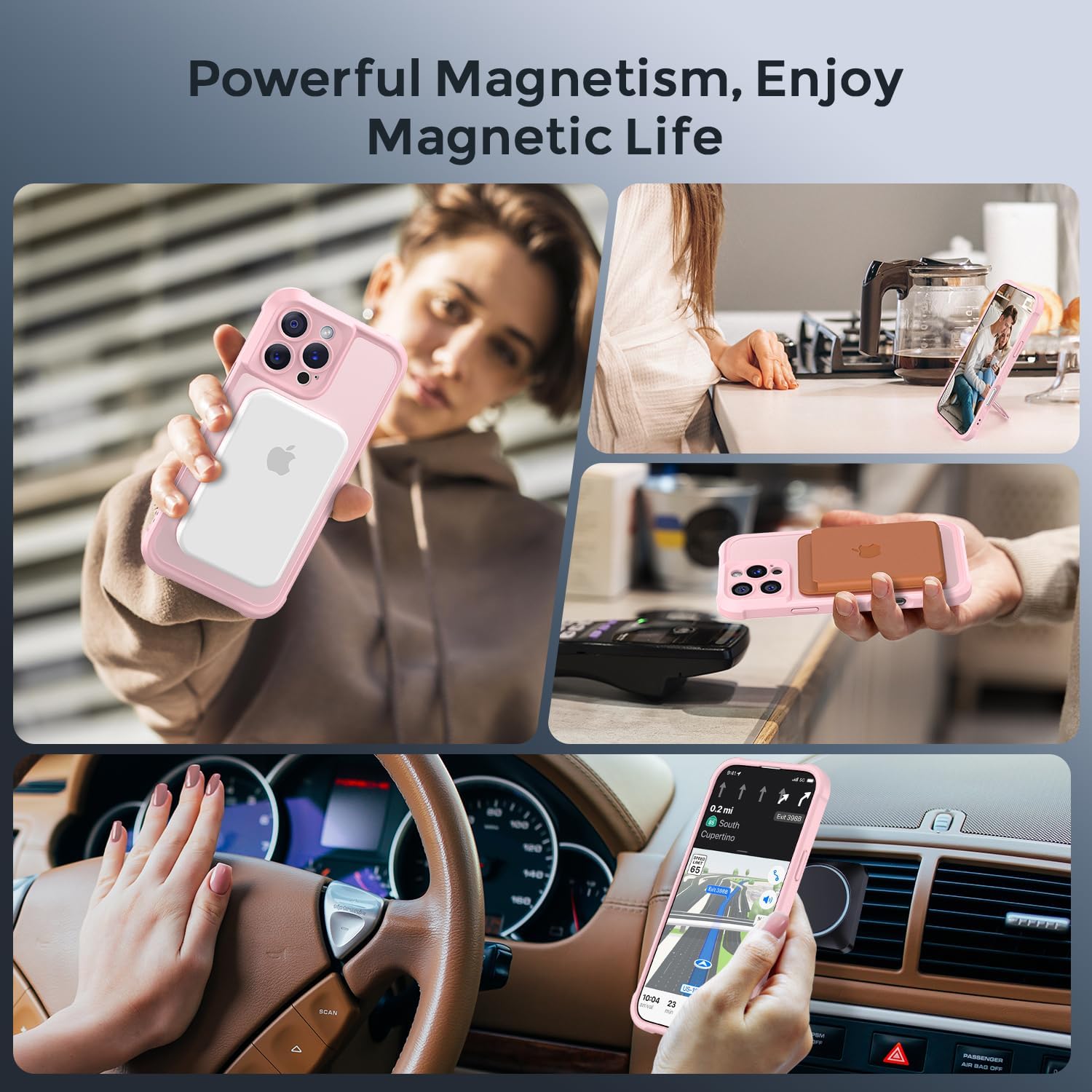【Perfectly Compatible with Magsafe Accessories】MOCCA iPhone 16 Pro Max Case with Magnetic Stand, the super strong 20N magnetic suction not only seamlessly compatible with Magsafe accessories for wallets, chargers, car mounts, etc., to meet the needs of different scenarios of use, but also provides up to 25W charging speed for iPhone 16 Pro Max, with almost 0% power consumption(Warmly tips: the phone with Camera lens film may not be applicable, may need to remove it before using our case)