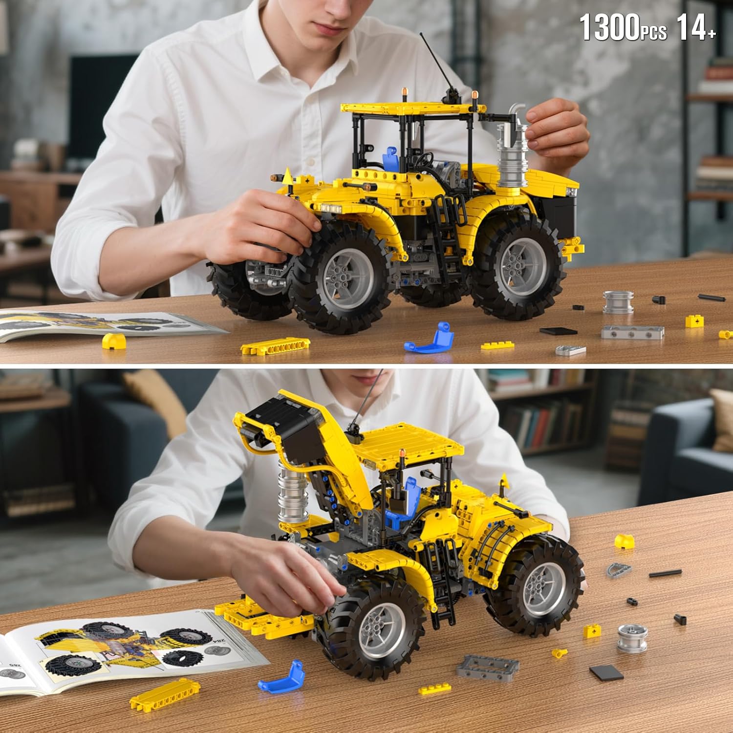 【Tractor Building Kit】1300+ piece construction vehicle building set with realistic tractor design. Restores authentic mechanical appearance and actions, suitable for long building sessions and display.