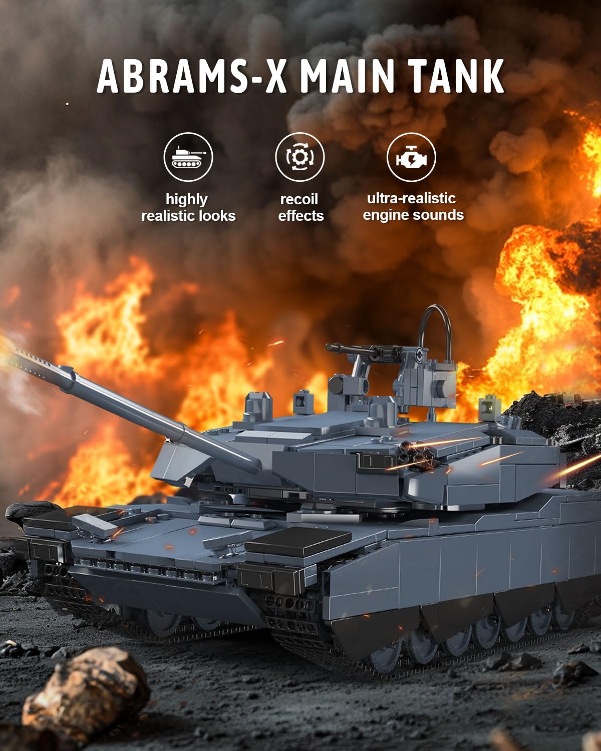 Mould King 20036 Abrams-X Tank Building Block Kits, 1192 PCS Military Vehicle Model Building Blocks Set, DIY Collectible Model Kits, Remote/APP Control Construction Toys for Adults