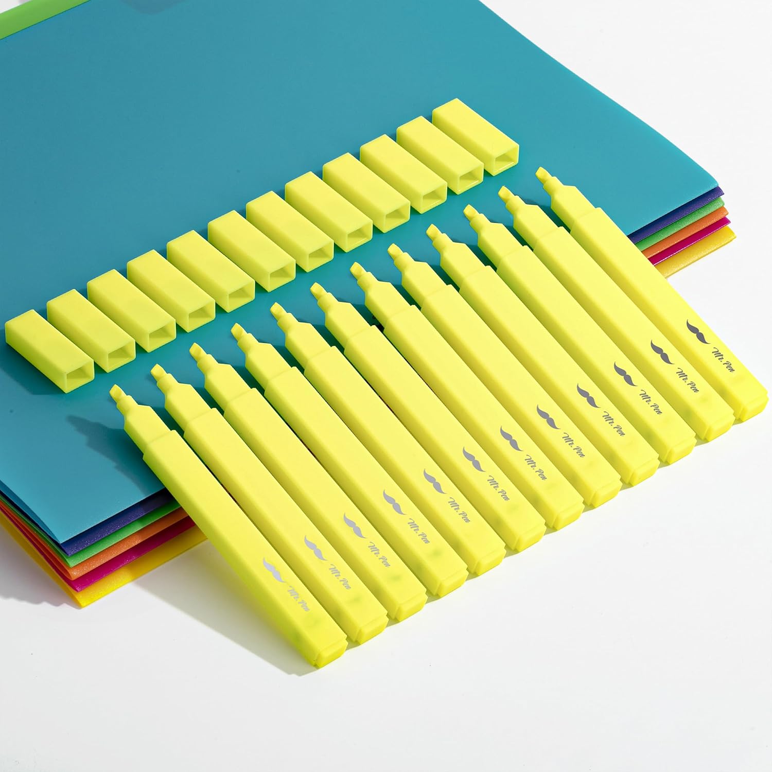 Mr. Pen Aesthetic Highlighters, 12 pcs, Fluorescent Yellow, Chisel Tip, No Bleed Bible Highlighter Pens