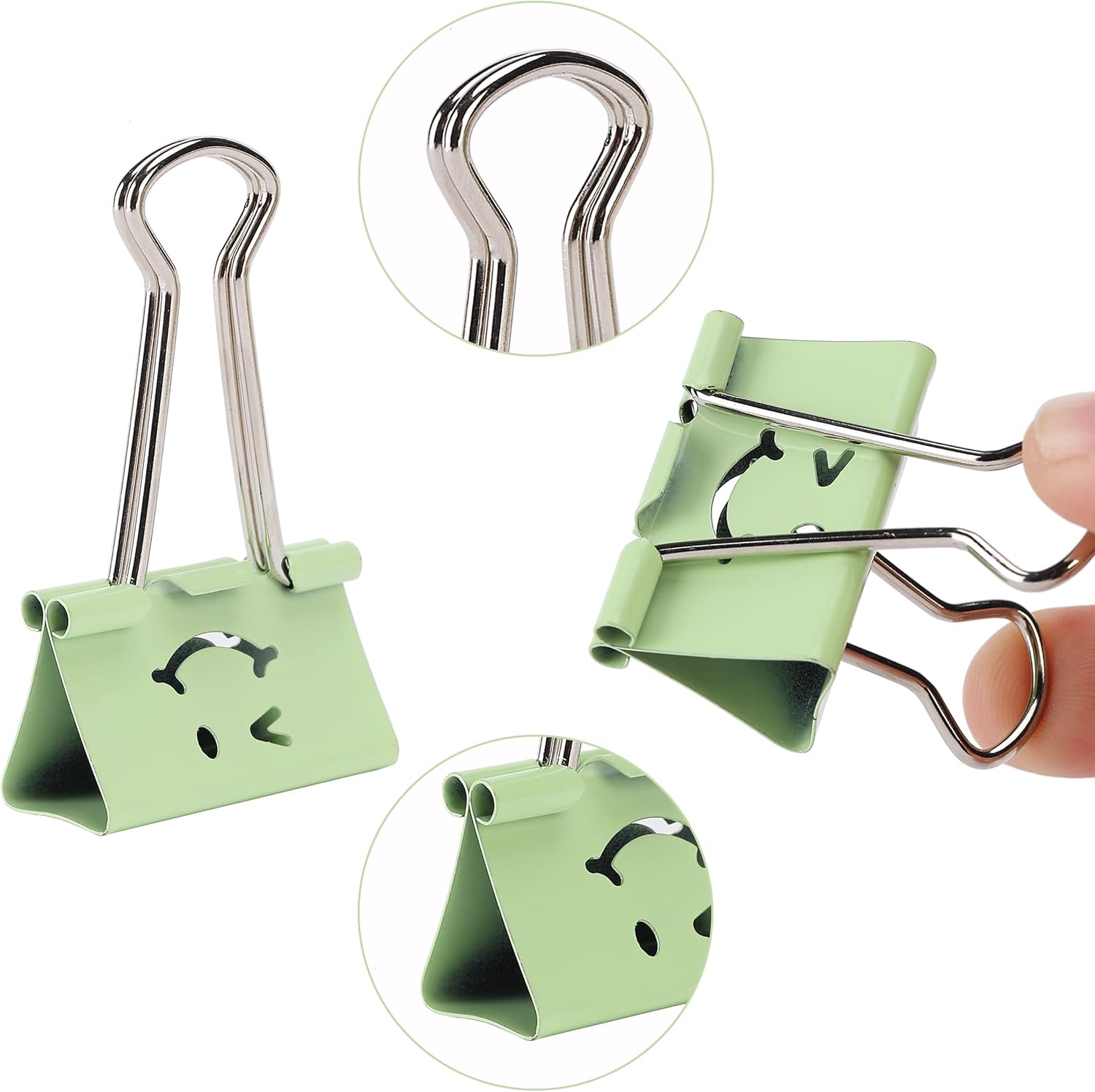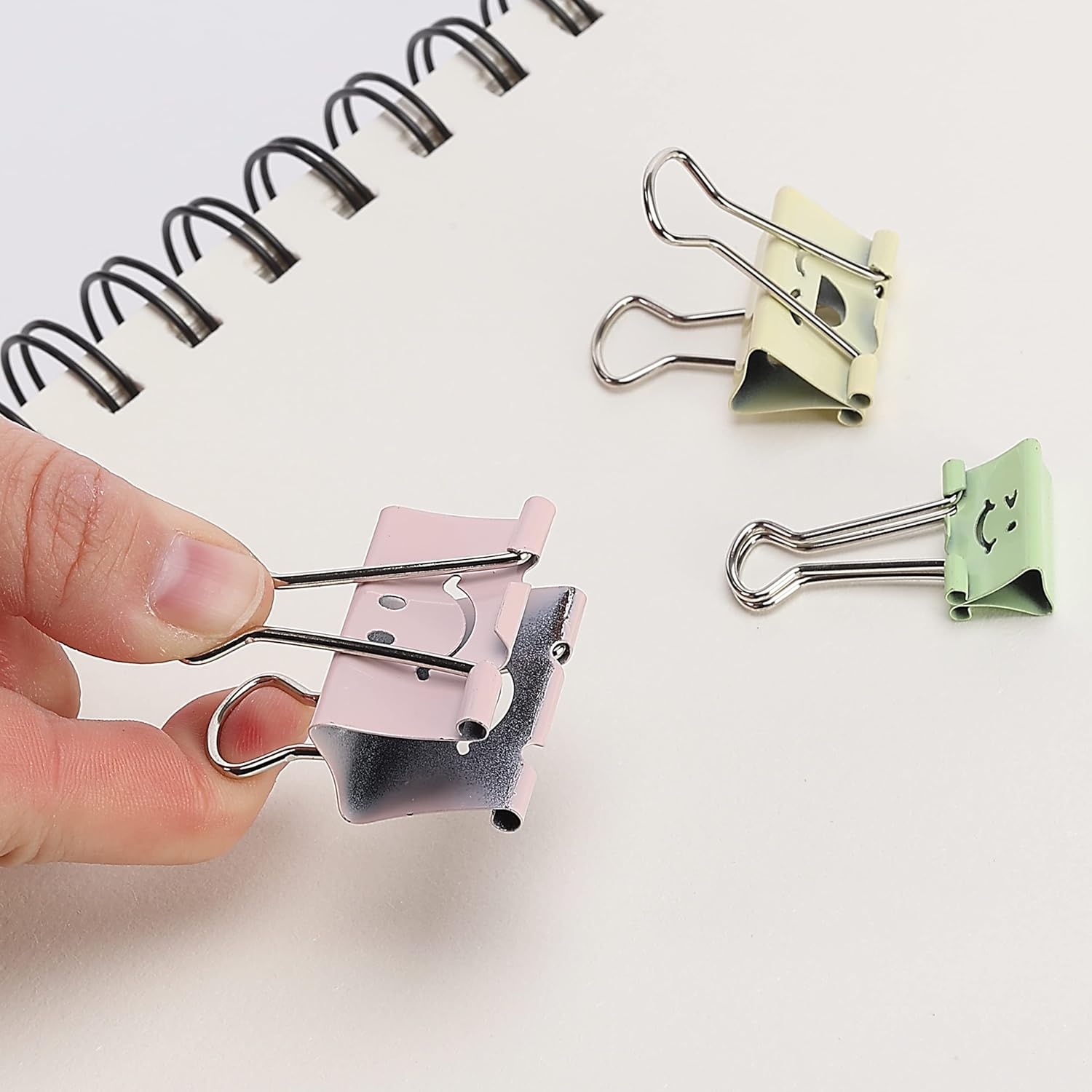 Mr. Pen smiley binder clip is a versatile office supply that can be used in various ways. The clip’s handles can remain upright, fold flat, or be removed for more specialized functions.