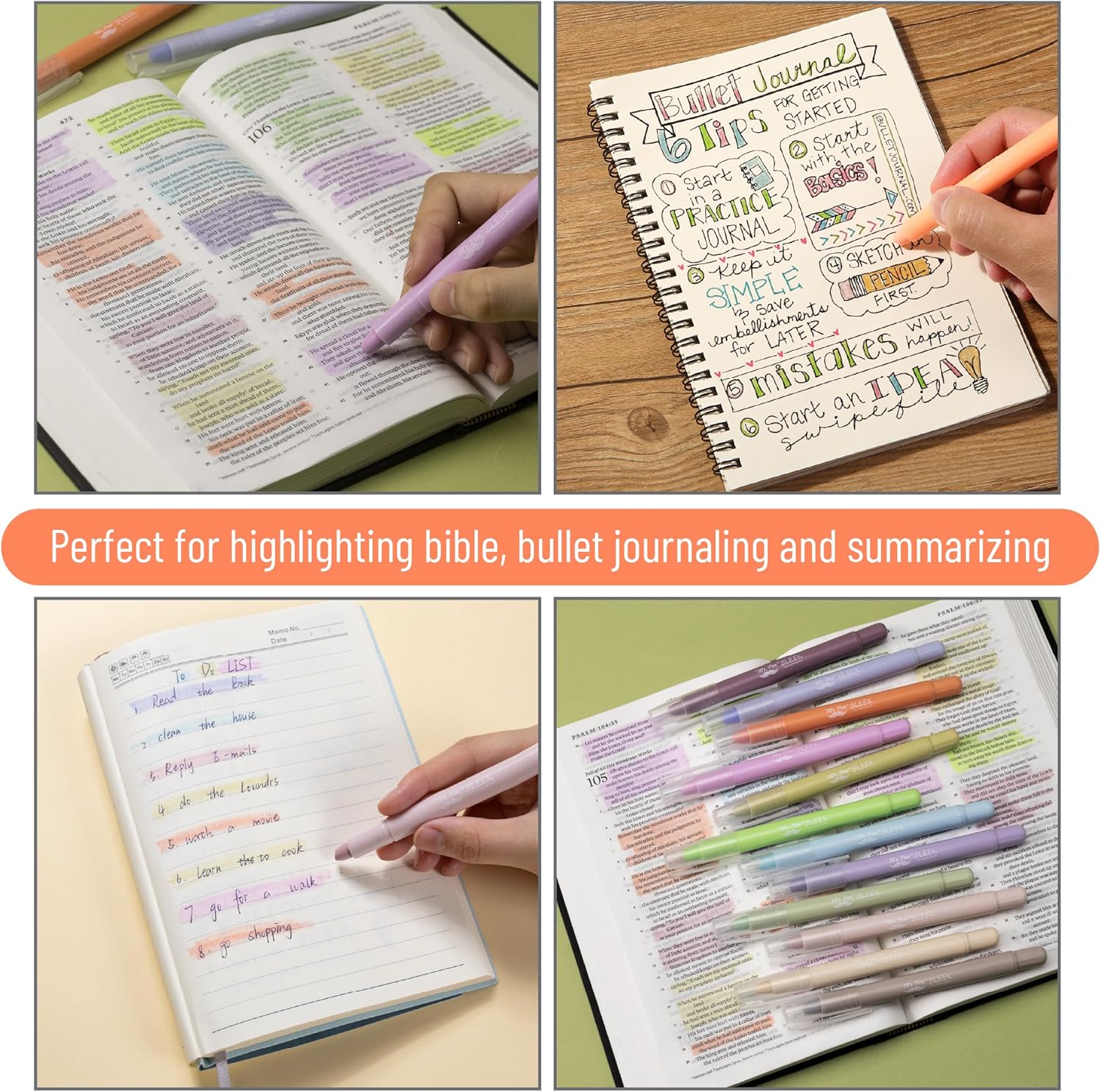 Dive into a world of highlighting with Mr. Pen no bleed gel highlighters, specifically designed for Bible pages but versatile enough for any document. This pack of 12 offers a delightful array of pastel colors to suit every mood and theme.