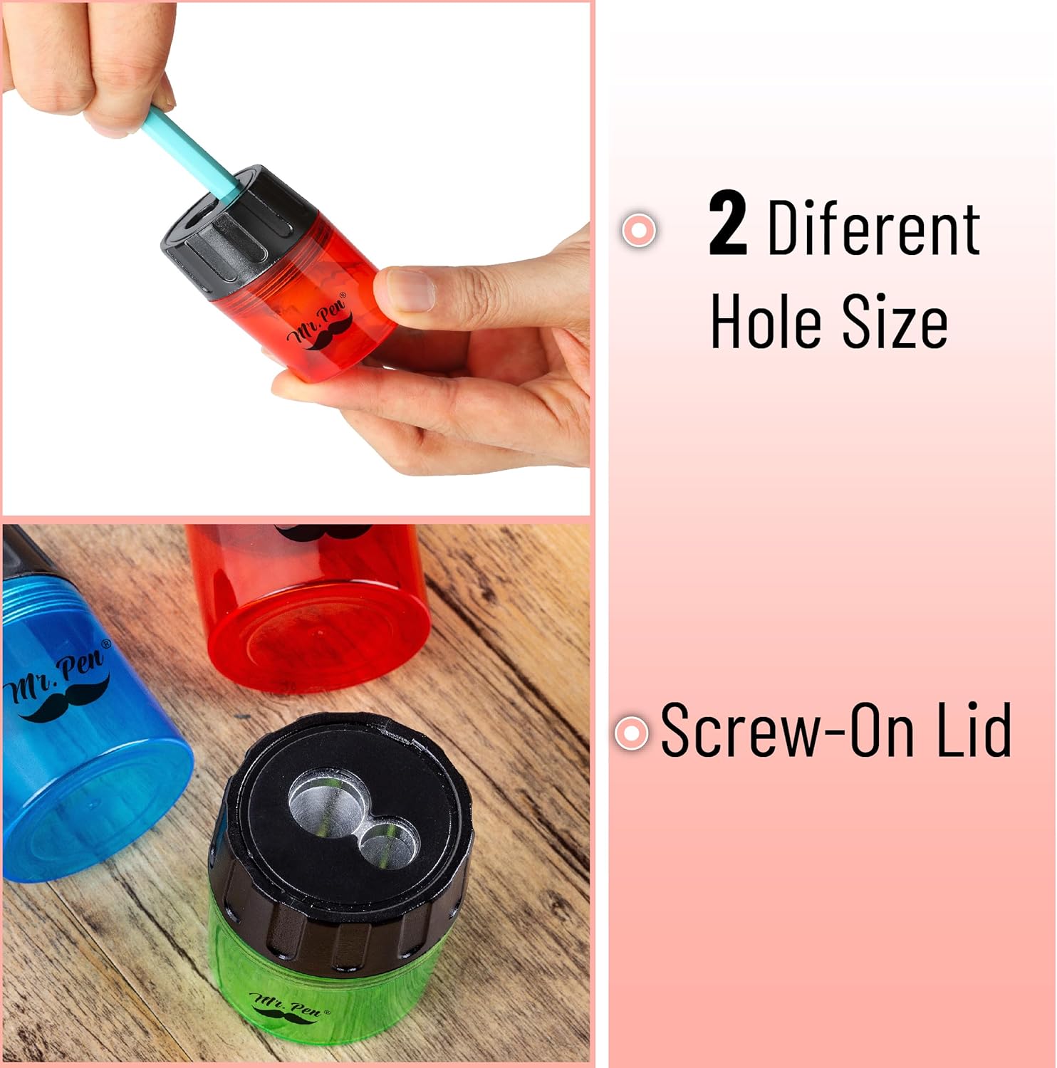 Mr. Pen- Handheld Manual Pencil Sharpener with 2 Sharpening Holes and Screw-On Lid, Pack of 6, Pencil Sharpeners, Colored Pencil Sharpener Manual, Back to School Supplies