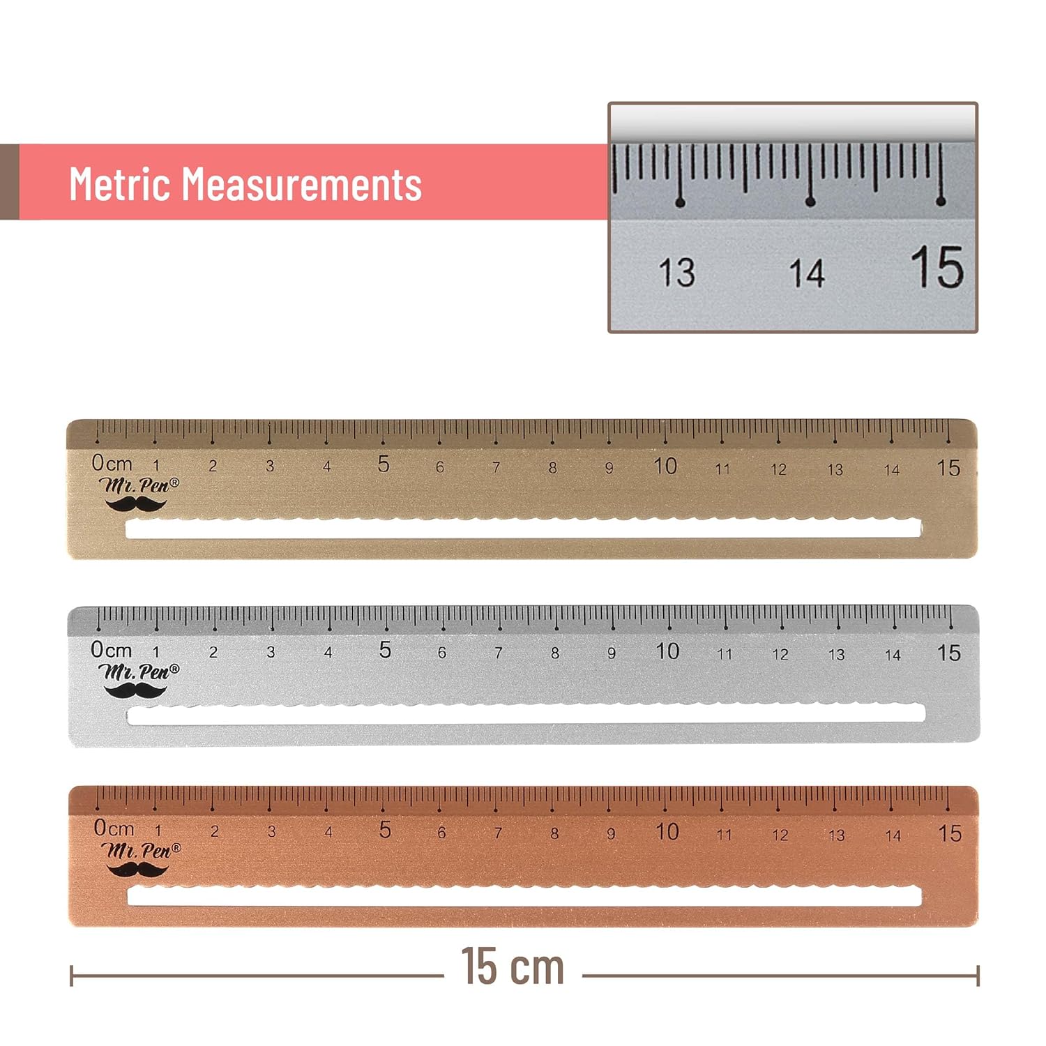 Mr. Pen- Steel Rulers, 3 pcs, 15cm, Silver, Gold, Rose Gold, Centimeter Ruler, Metric Metal Ruler Set, mm Ruler, Metal Rulers, Small Metal Ruler Metal Straight Edge, Steel Ruler, Standard Ruler