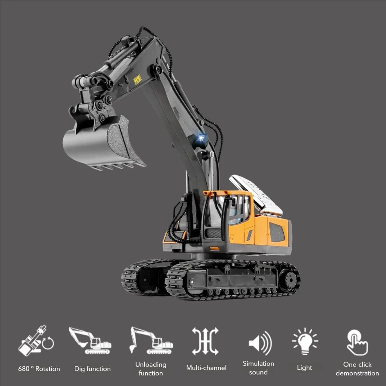 Rugged Play: Crafted from alloy metal and reinforced ABS plastic, this RC excavator is built to withstand tough terrain and aggressive use