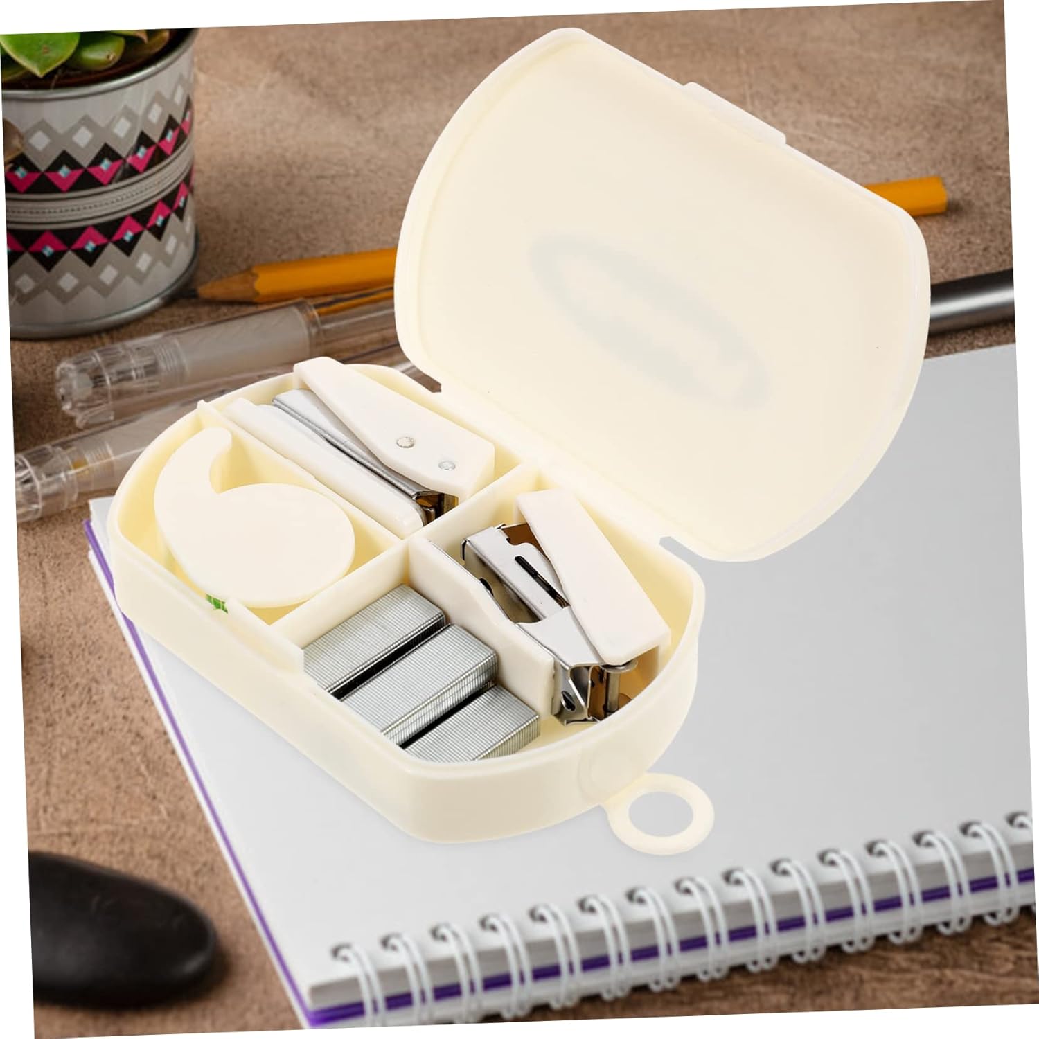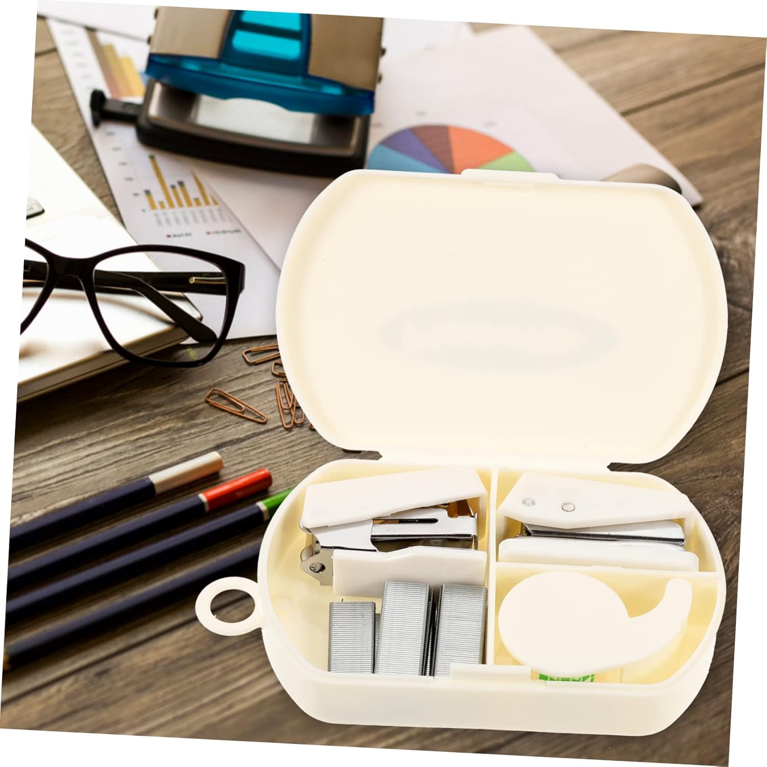 1 Set Hand Tool Box Handheld Stapler Tiny Stapler te Stapler Tool Kit Mini Office Supply Kit Puncher Single Mini Desk Office Stapler Staplers Craft Stapler Abs White