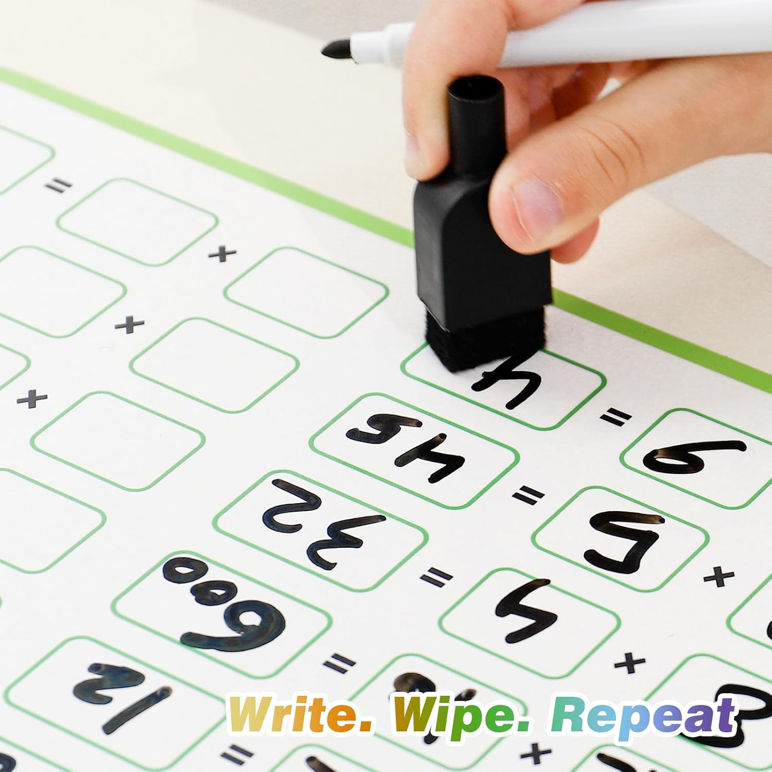 Comprehensive multiplication learning tools. Besides math pop it, it includes a multiplication chart and Multiplication wheels for additional practice. It not only serves as quick reference, but also provides fun and effective way to review repeatedly. With two dry-erase markers included, kids can practice and write freely