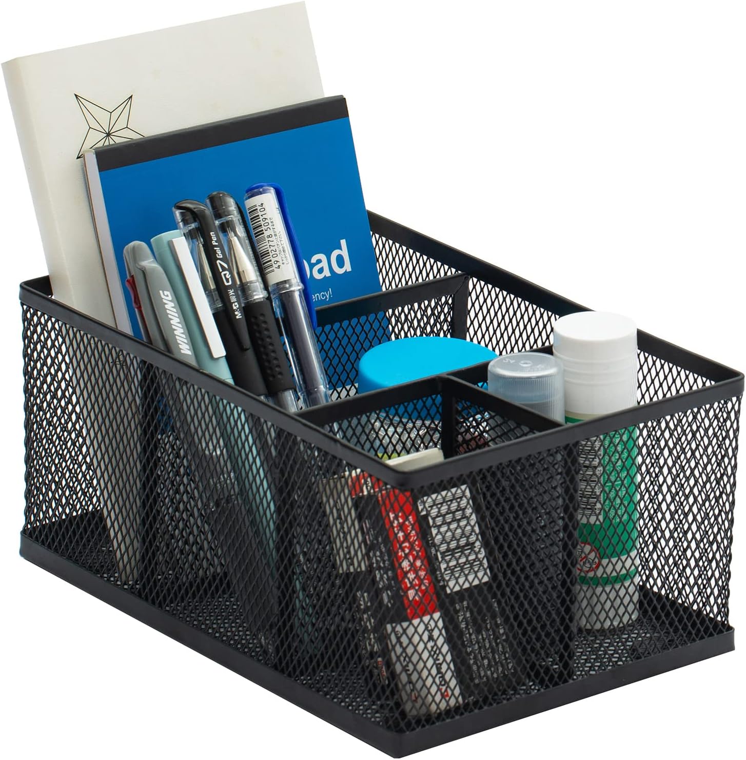With a classic black finish and sturdy metal wire mesh construction, this uniquely designed, space-saving organizer caddy is great for organizing various office or school supplies, making it the perfect desktop solution for all your everyday needs.