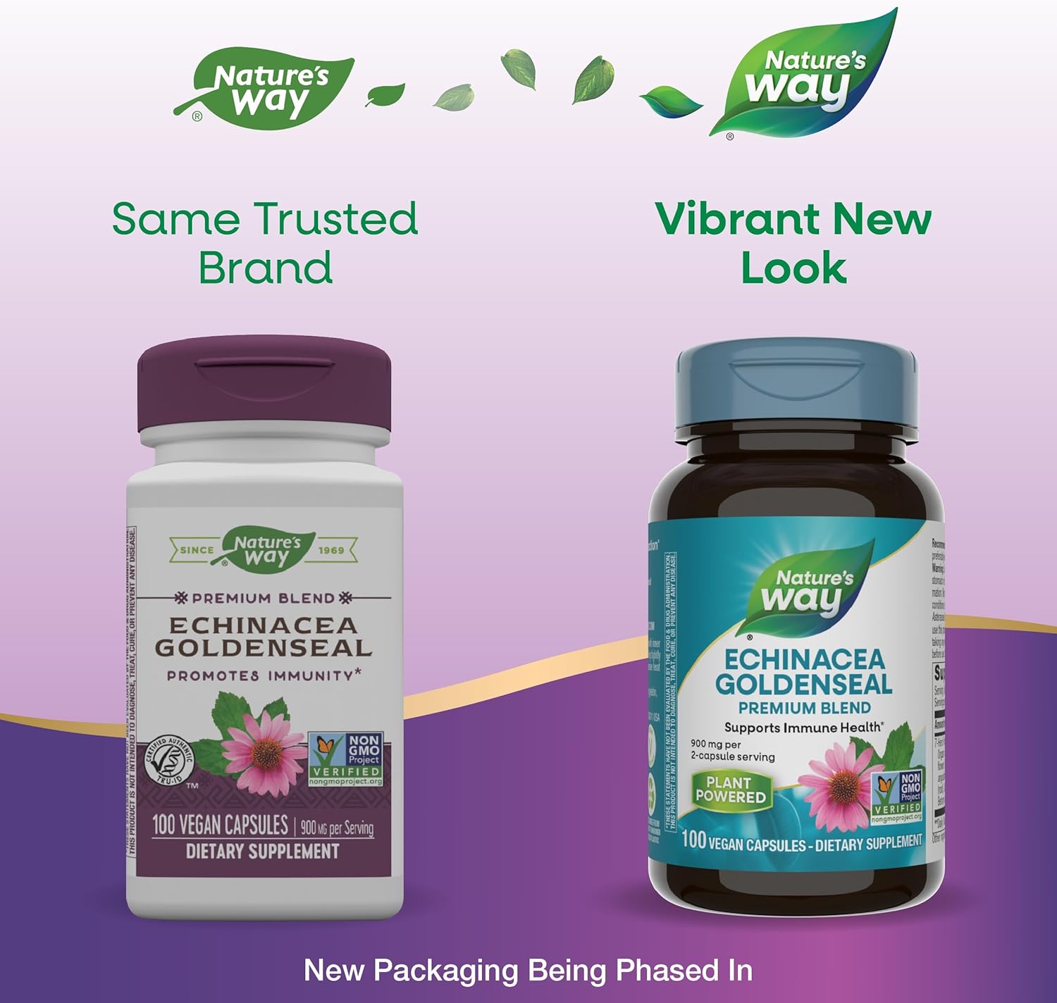 Nature’s Way Echinacea Goldenseal, Premium Blend, Supports Immune Health*, 900 mg per 2-Capsule Serving, Non-GMO Project Verified, Vegan, 100 Capsules (Packaging May Vary)