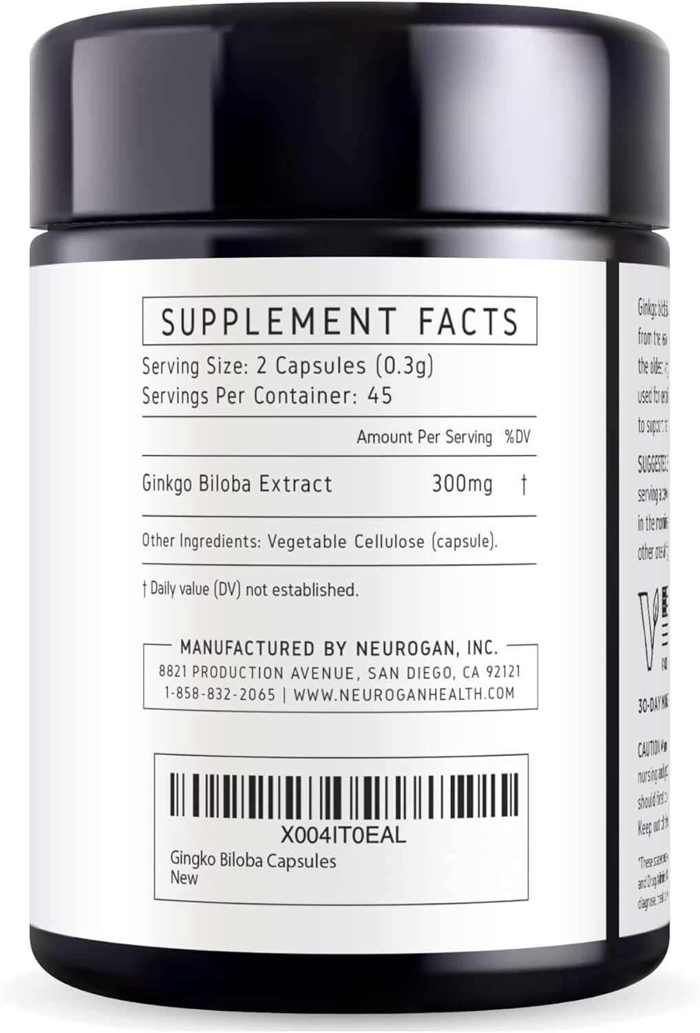 Neurogan Ginkgo Biloba Supplements Capsules – Herbal Brain Supplements for Memory & Focus – Cognitive Supplement with Standardized Extract – 90 Vegan-Friendly Capsules