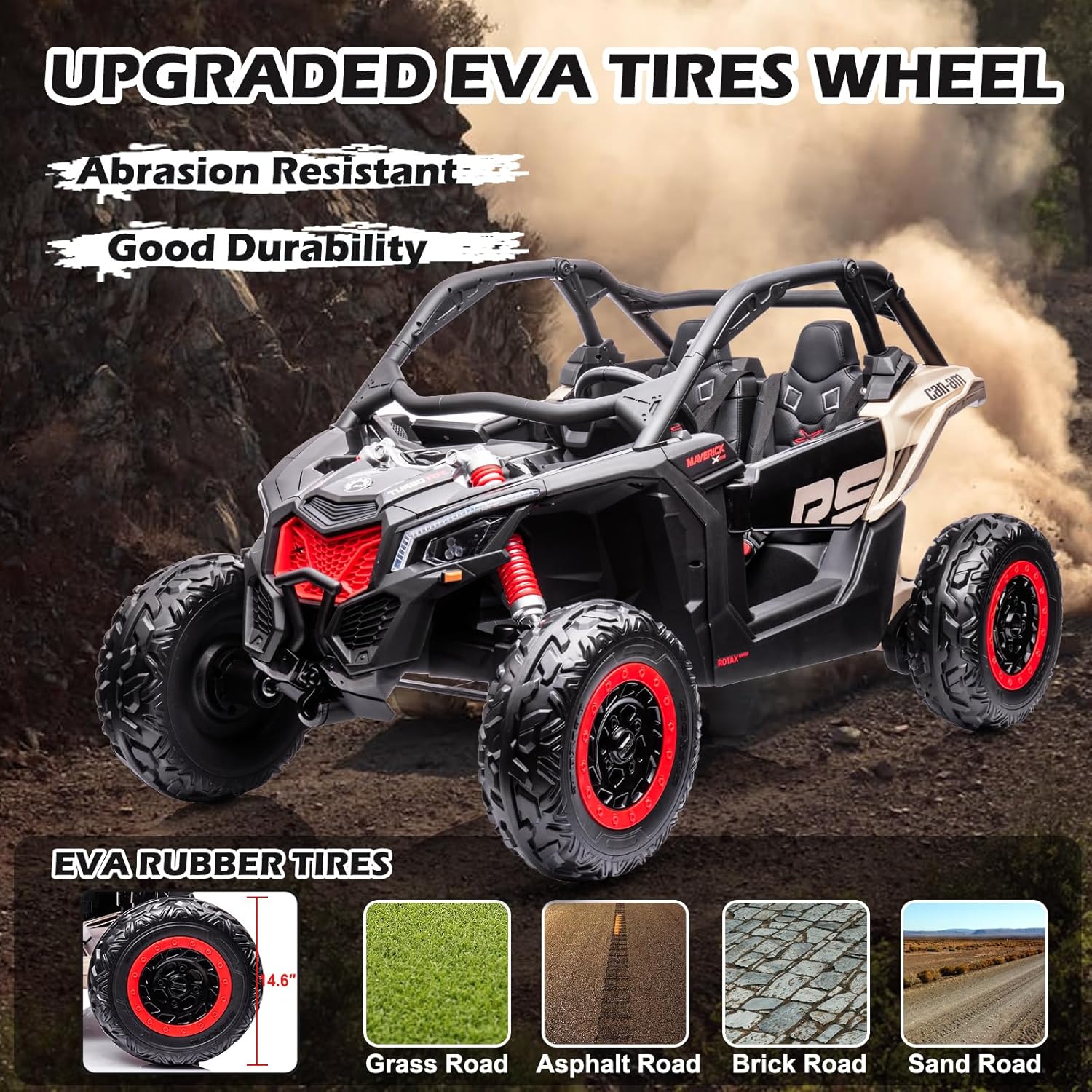NEWQIDA 24V Ride on Car with Remote Control, 2 Seater Ride On Toys Off-Road Buggy Truck Licensed Can Am Maverick UTV Electric Vehicles for Boys Girls, EVA Rubber Wheels, Spring Absorbers, Black
