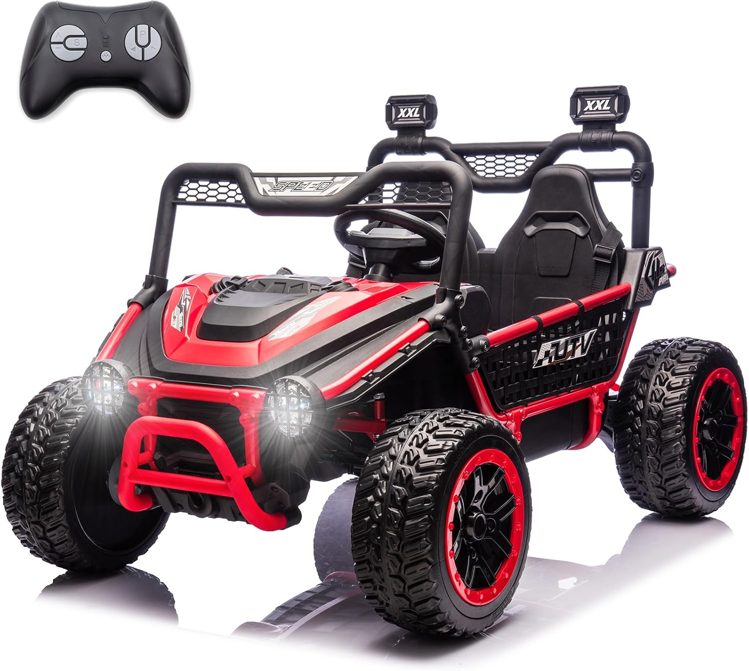 NEWQIDA XXL 24V Kids UTV 2 Seater Ride on Toys W/Remote Control 4×4 Electric Car for Boys Girls, 4-Wheeler Spring Suspension, Up to 5MPH, EVA Rubber Tires, Bluetooth, Music, 22″ Spacious Seat, Red