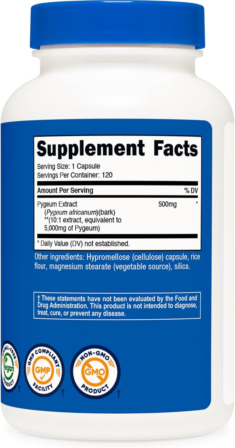 Nutricost Pygeum Extract 5000mg Equivalent, 120 Capsules (from 500mg of 10:1 Extract) – Veggie Capsules, Non-GMO, Gluten Free, Vegetarian Friendly