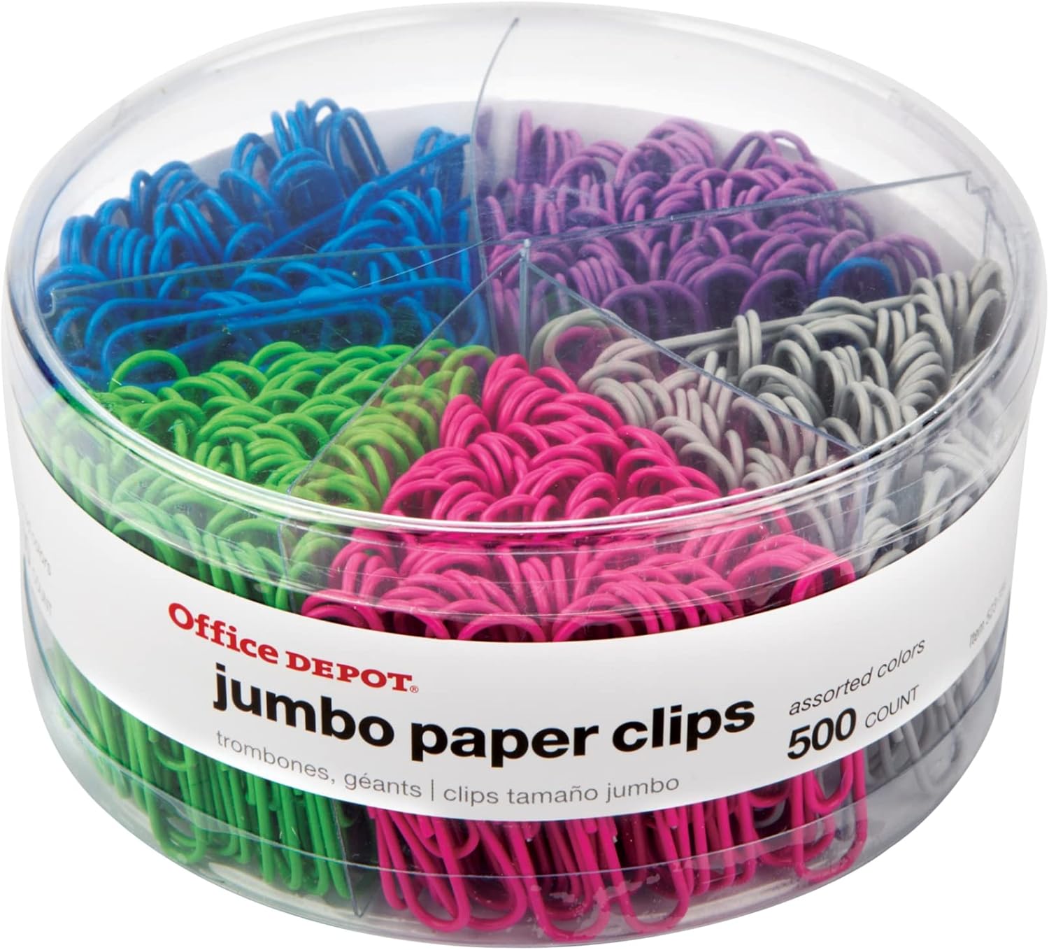 Add the finishing touch to your presentation packets with these large Office Depot Brand paper clips. The colored paper clips are helpful for color-coding, and their jumbo size offers extra gripping power to accommodate thicker stacks of paper.