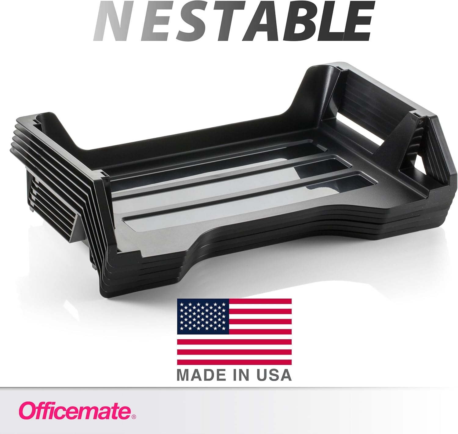 Organizes your papers in minimal space using these stackable letter trays. Offers a compact footprint for efficient organization. Stackable to increase filing area. Self-stacking so no supports are needed. Easy built in handles makes trays easily portable. Made from 30% post consumer recycled plastic. Made in USA