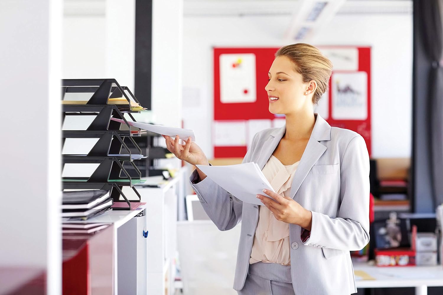 Stores papers and documents to keep them organized.