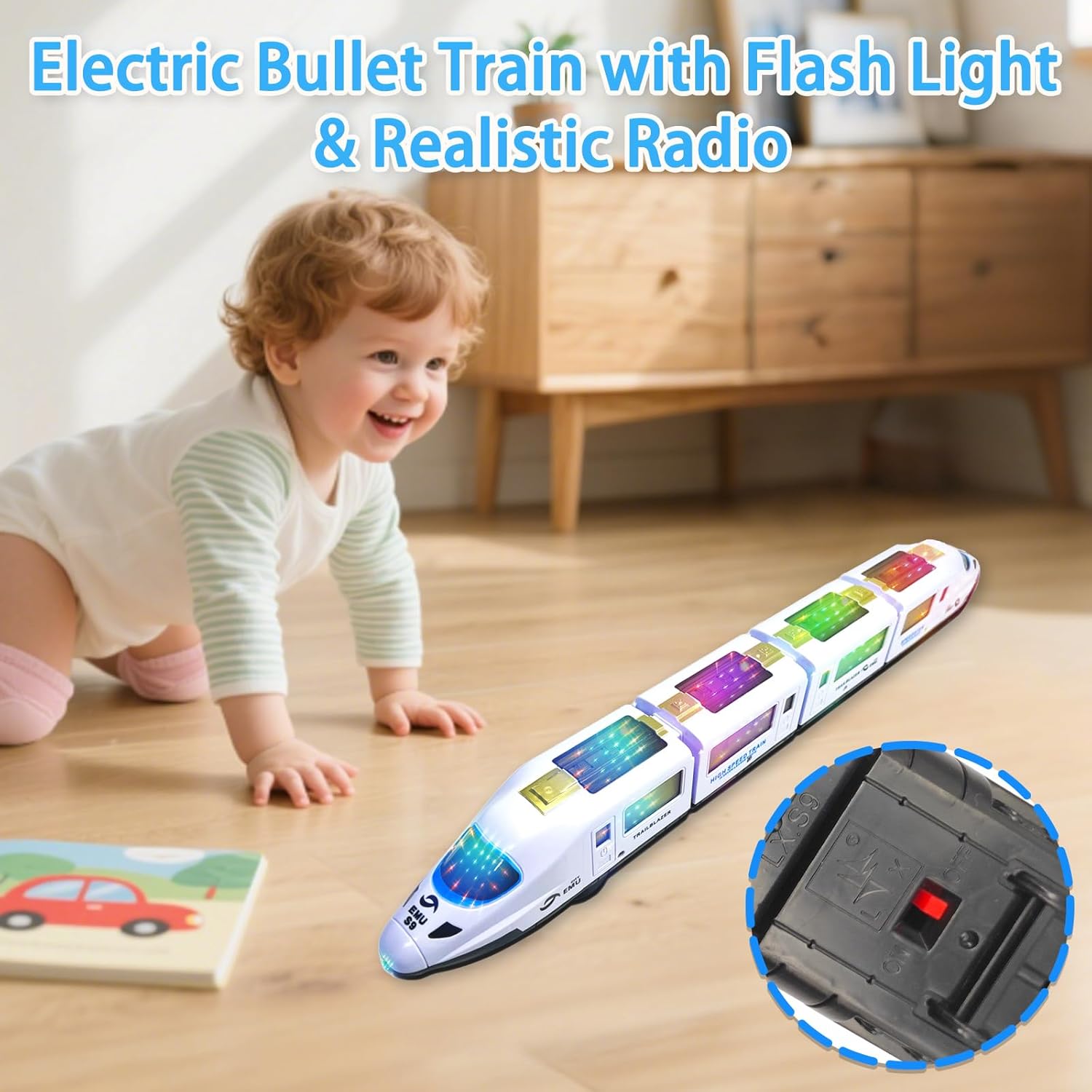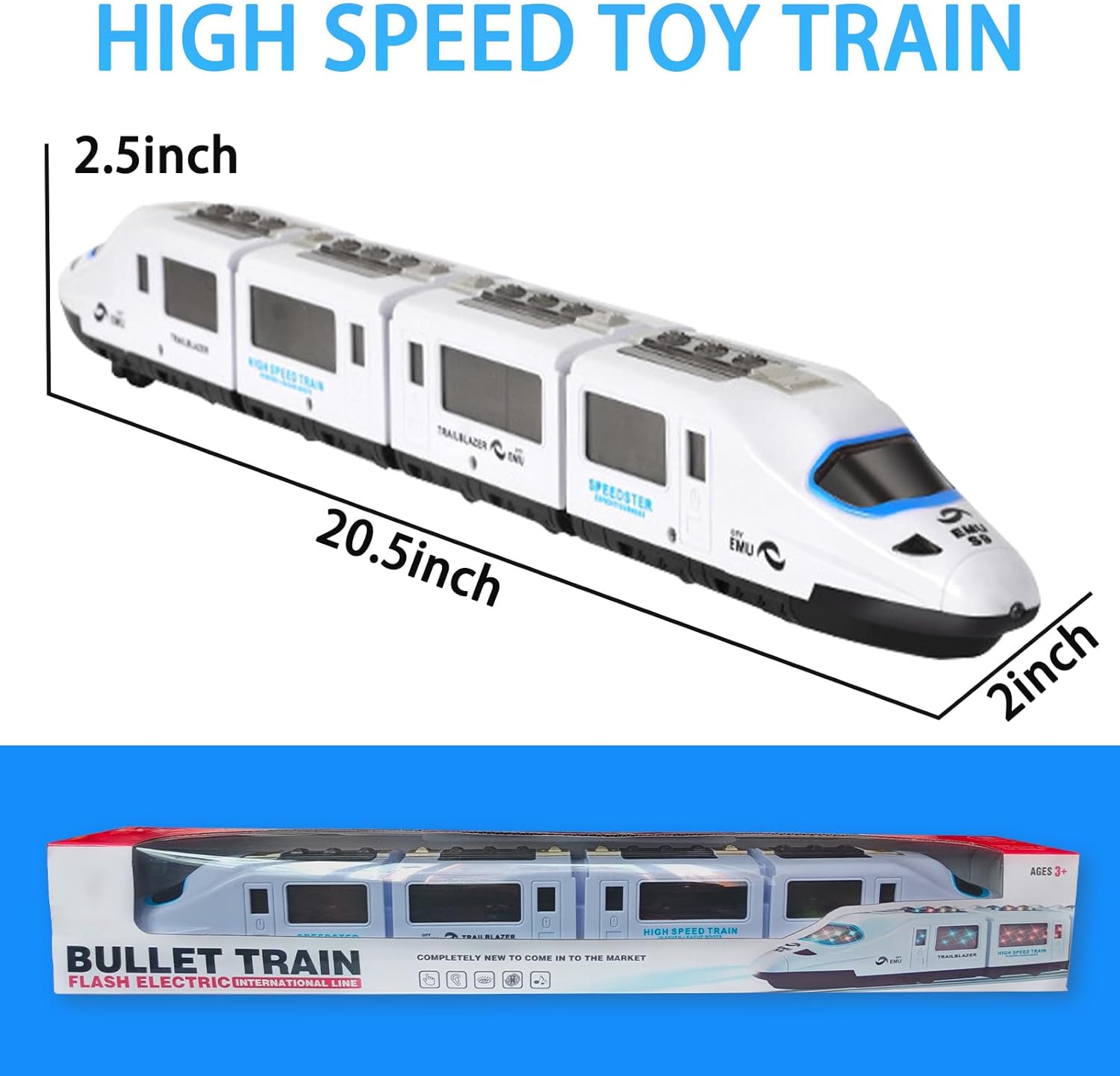 OTONOPI Toy Train Electric Bullet Train Battery Operated Action Locomotive Car High Speed Vehicle with 3D Lightning and Music Gift for Kids, Goes Around and Changes Directions on Contact, 20.5” Long