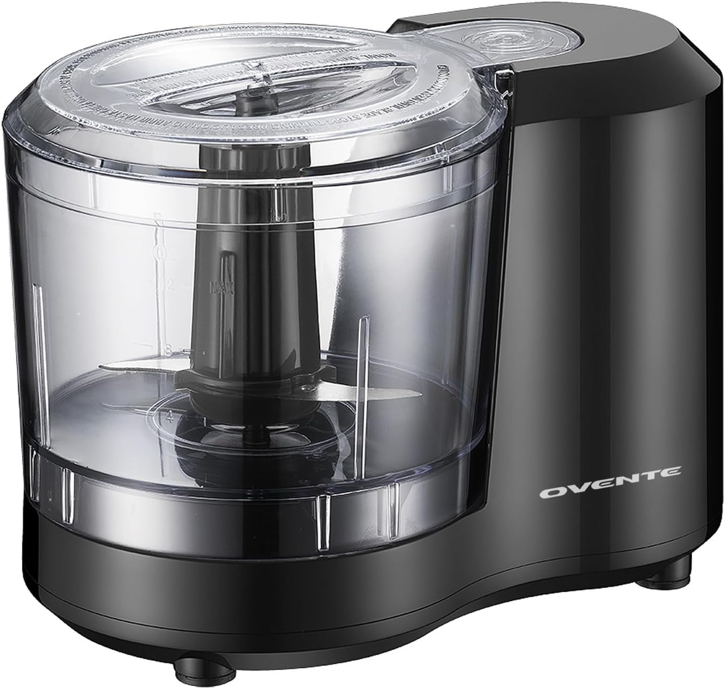 OVENTE 1.5-Cup Electric Food Chopper, 100W Food Processor with One-Touch Control and Stainless Steel Blade Ideal for Slicing Vegetable, Grinding, Shredding, Mincing, Puree and Meal Prep, Black PF1515B